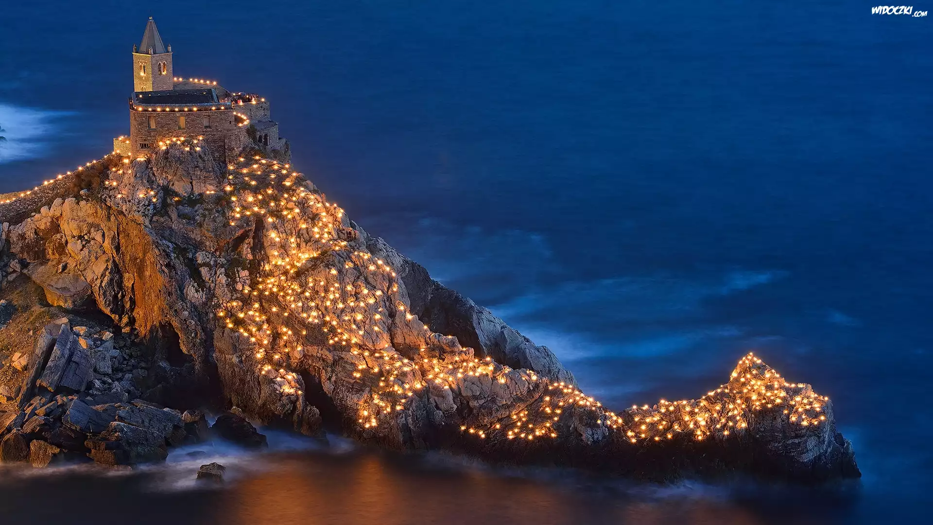 Chiesa di San Pietro - kościół św. Piotra, Miasteczko Portovenere, Region Liguria, Włochy, Morze Liguryjskie, Skały, Światła |