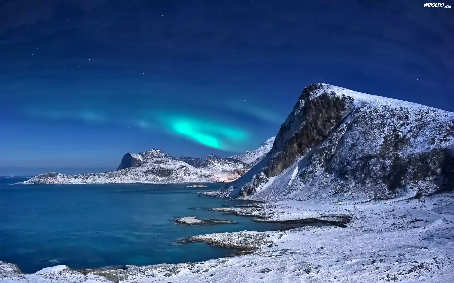 Zdjęcia, Morze, Wybrzeże, Zorza Polarna