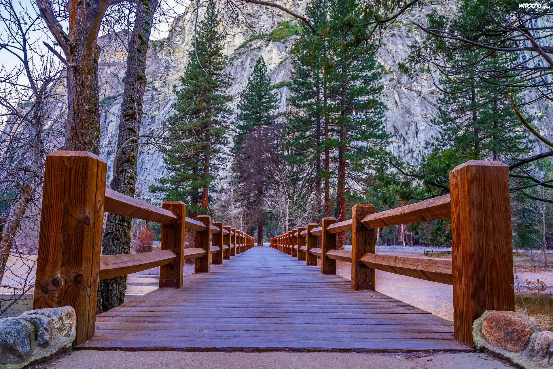 Zdjęcia, Most, Góry, Drzewa, Skały