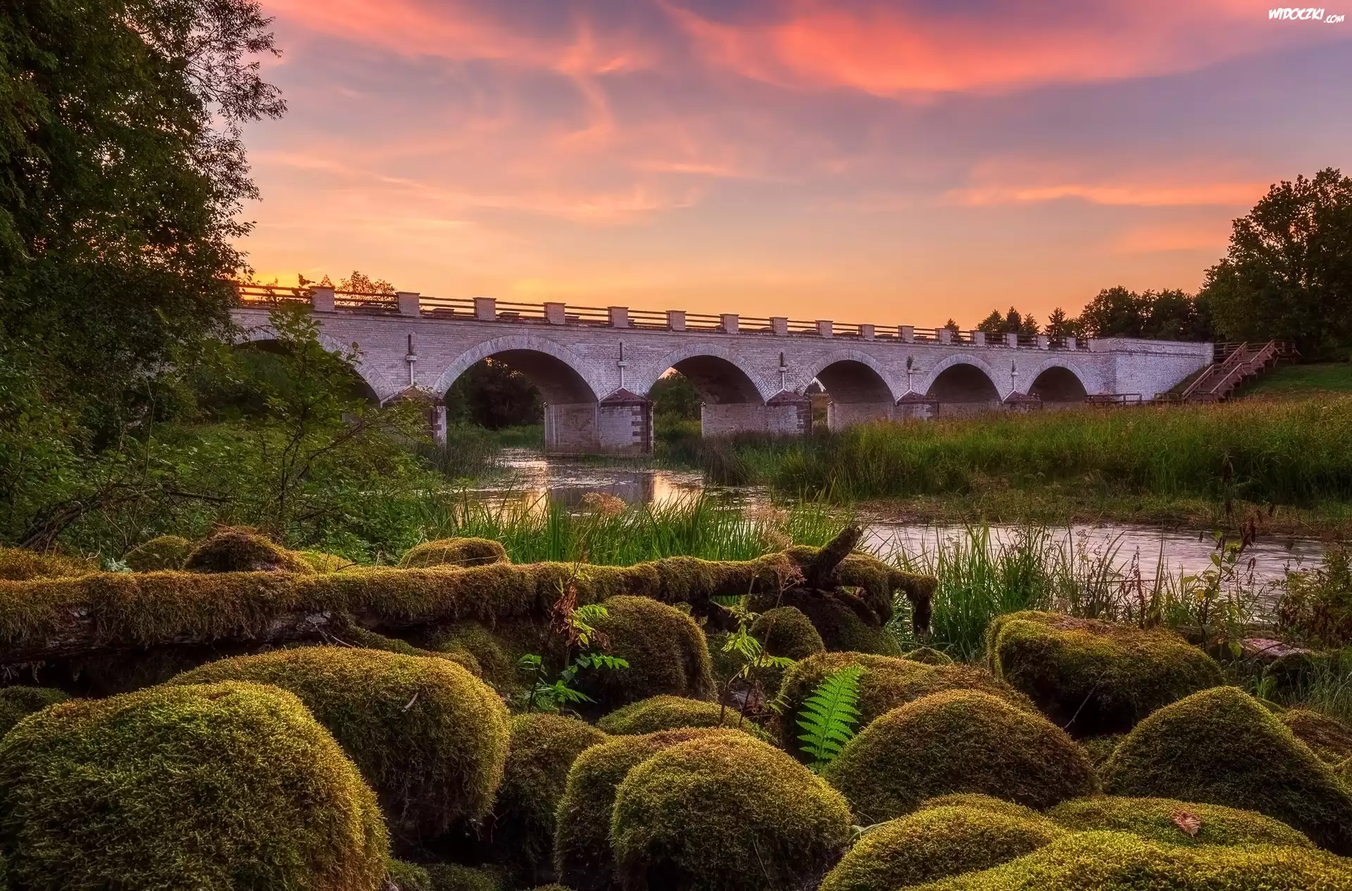 Zdjęcia, Most, Rzeka, Omszałe, Kamienie, Drzewa, Rośliny