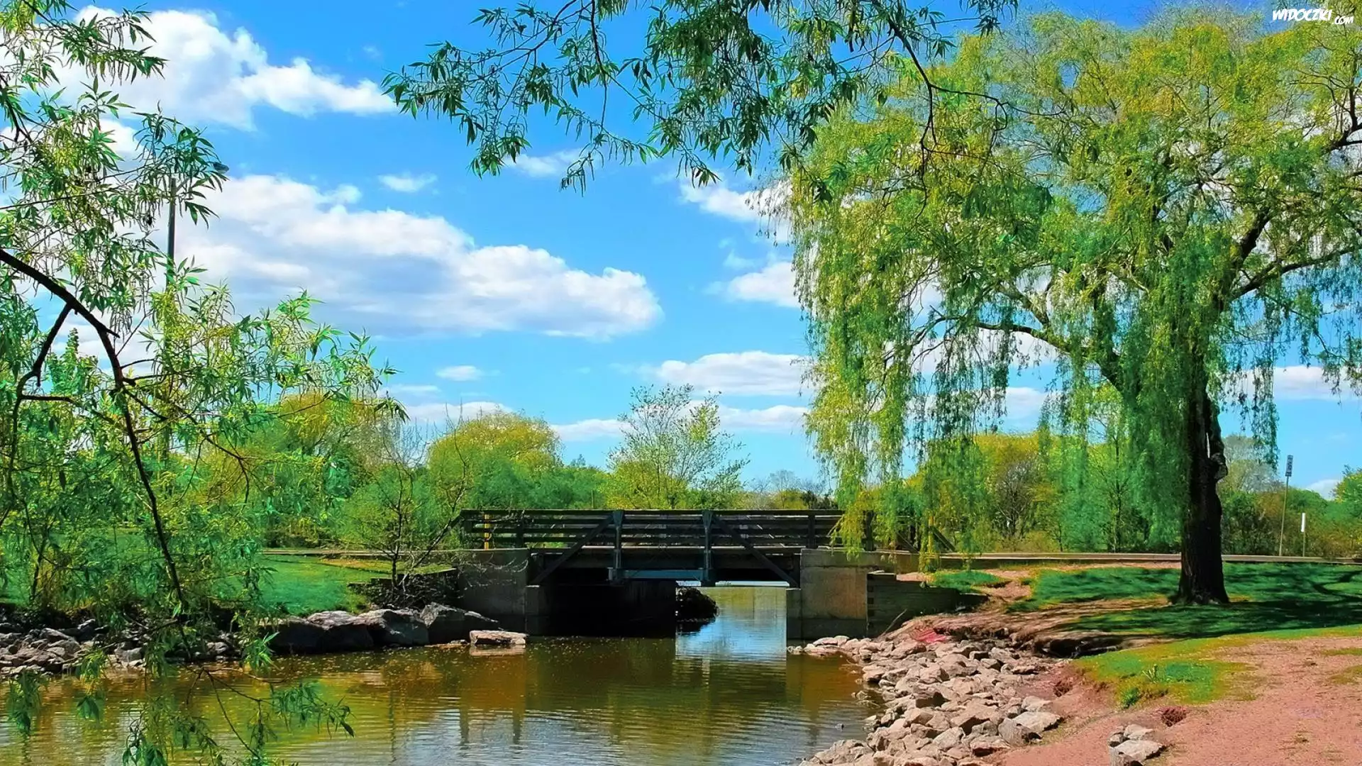 Zdj臋cia, Most, Rzeka, Drzewa, Kamienie