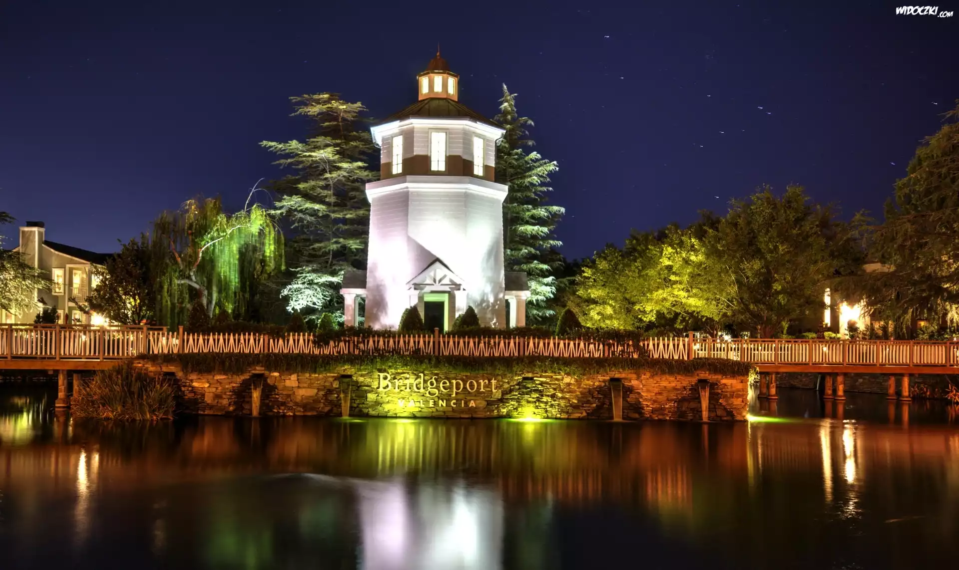 Zdjęcia, Most, Zabudowania, Drzewa, Noc, Walencja