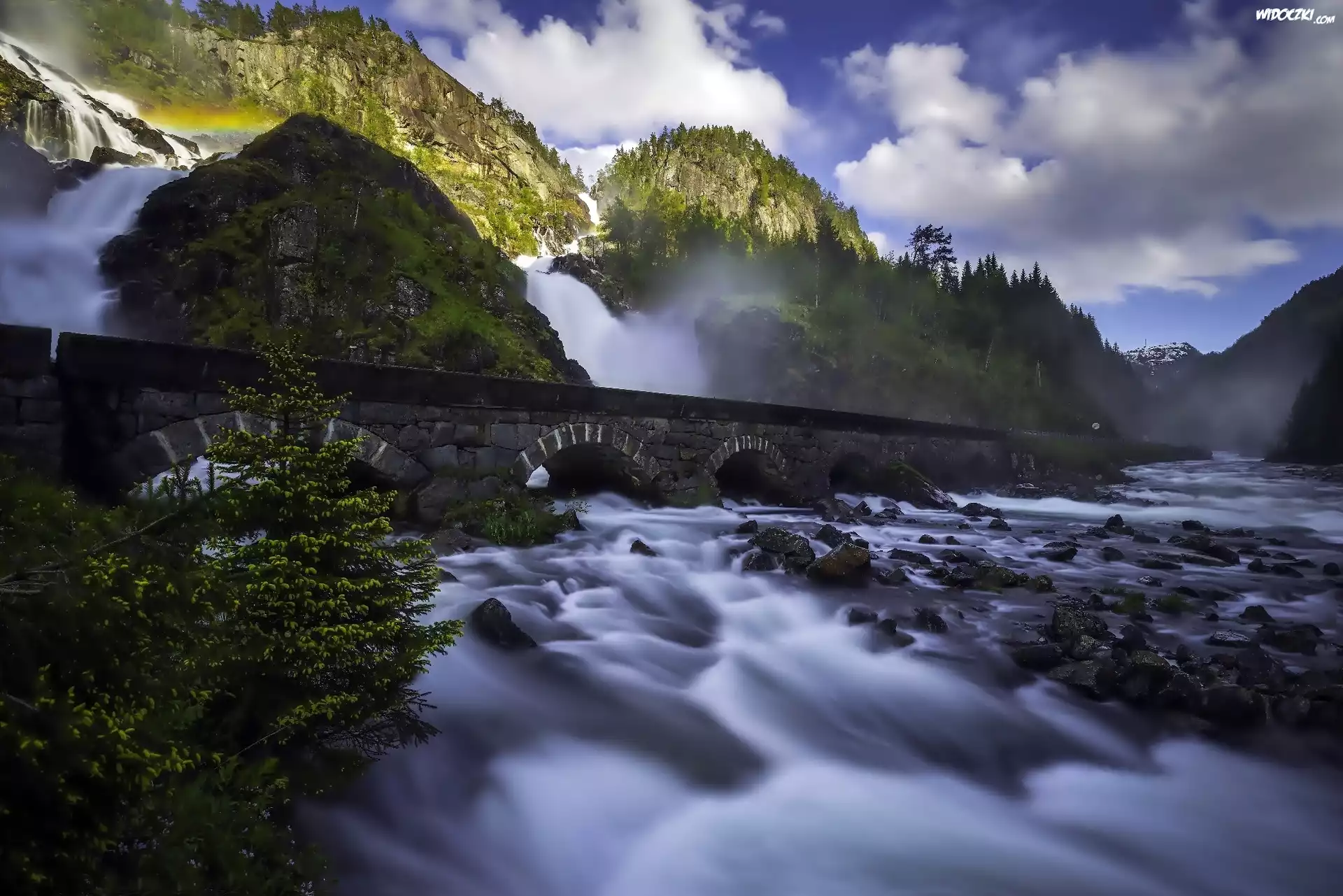 Zdjęcia, Most, Rzeka, Góry, Chmury