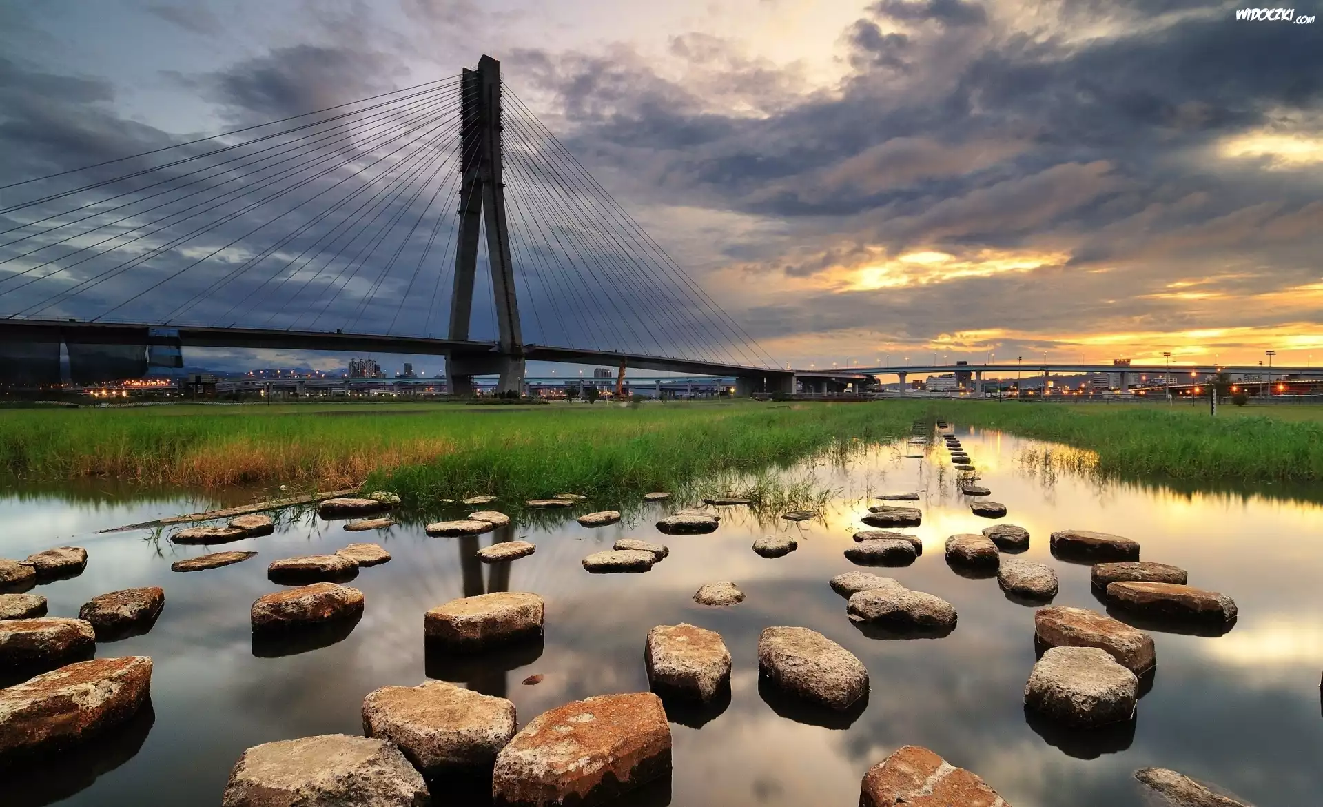 Zdj臋cia, Most, Woda, Kamienie, Chmury