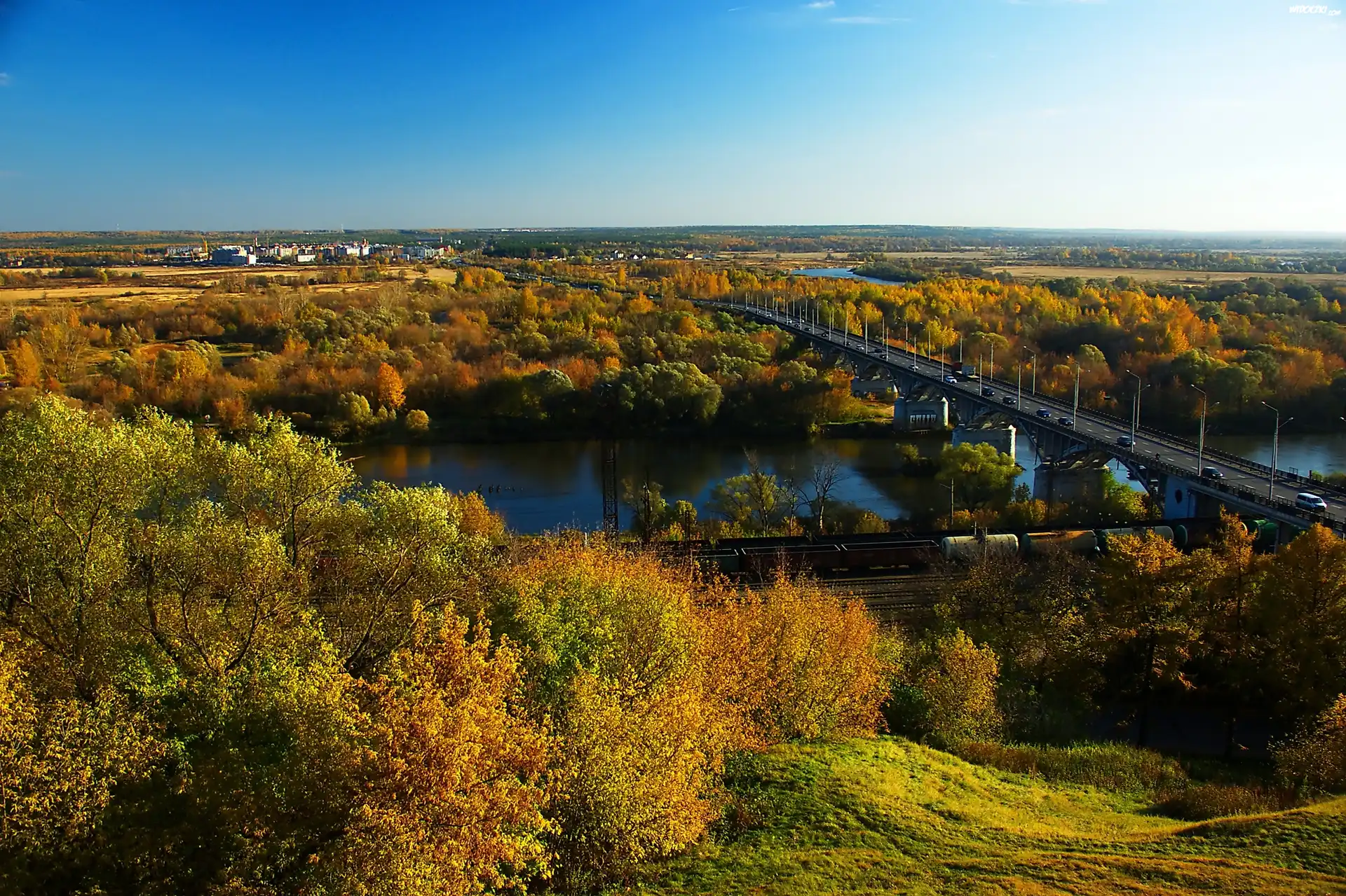 Zdjęcia, Most, Rzeka, Lasy, Panorama