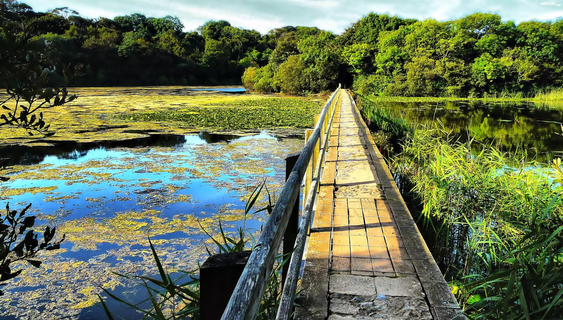 Zdj臋cia, Most, Szuwary, Lato, Staw