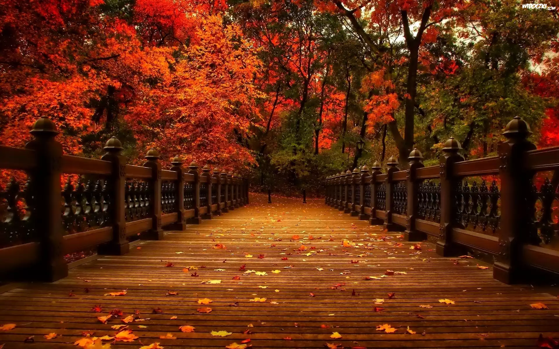 Zdjęcia, Most, Park, Kolorowe, Drzewa, Liście, Jesień