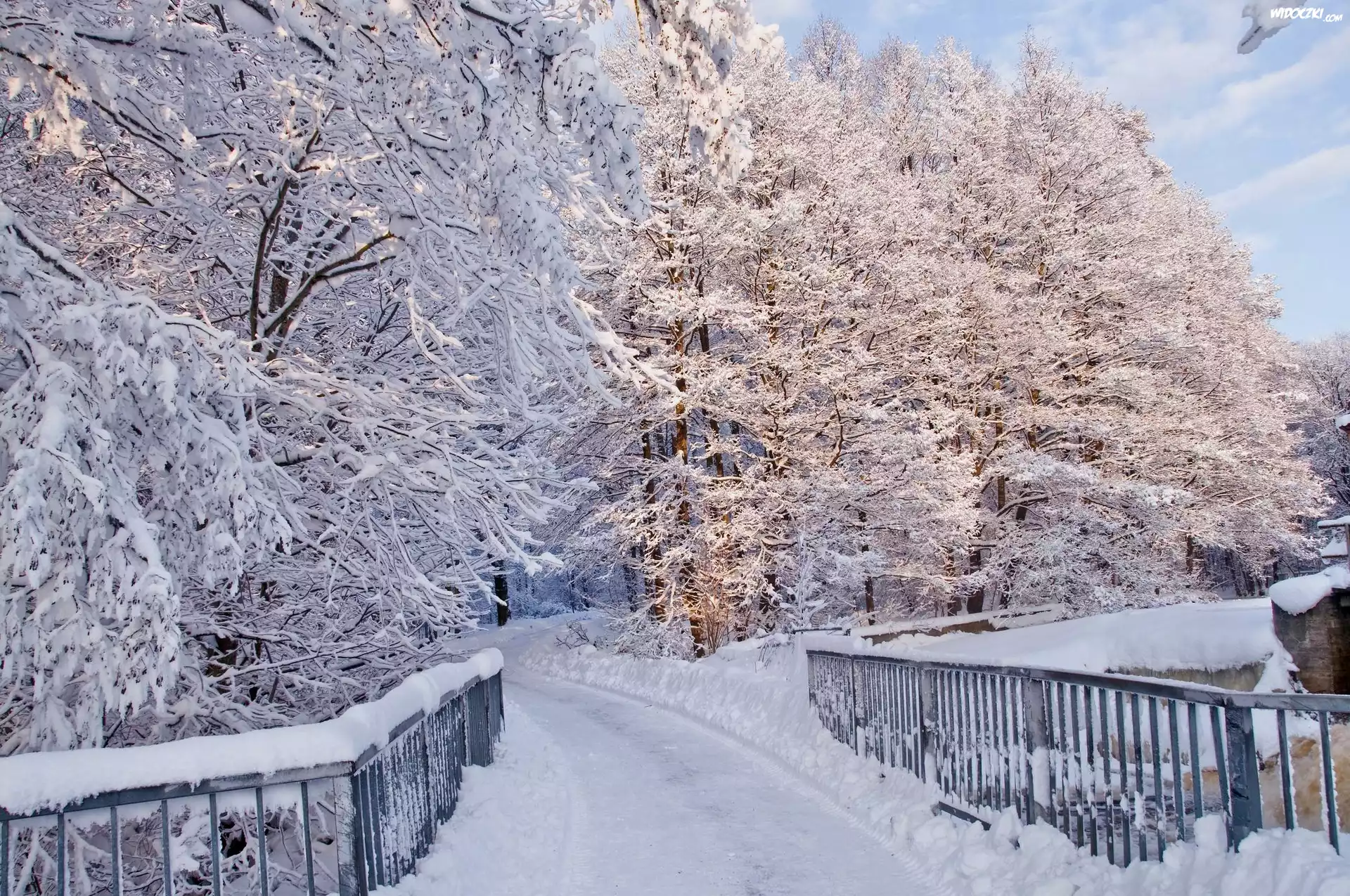 Zdj臋cia, Most, Zima, Oszronione, Drzewa