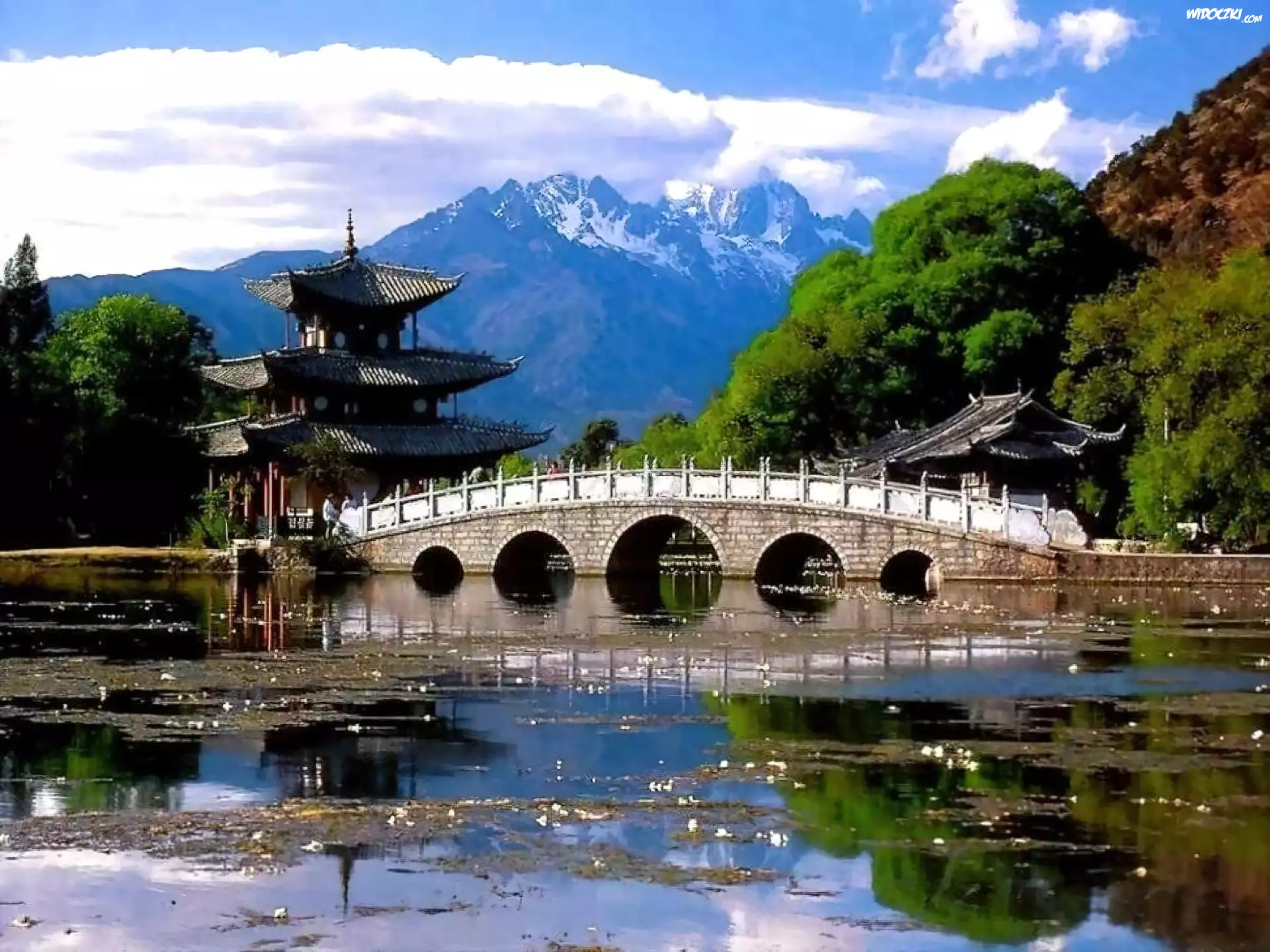 Zdjęcia, Most, Nad, Rzeką, Pagoda, Las