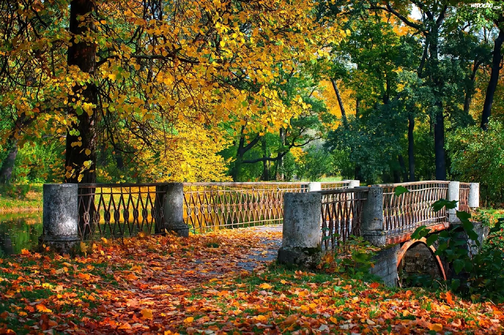 Zdjęcia, Most, Rzeka, Liście, Park, Jesień
