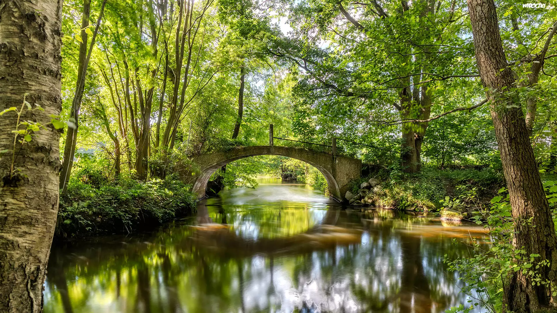 Zdj臋cia, Kamienny, Most, Rzeka, Zielone, Drzewa