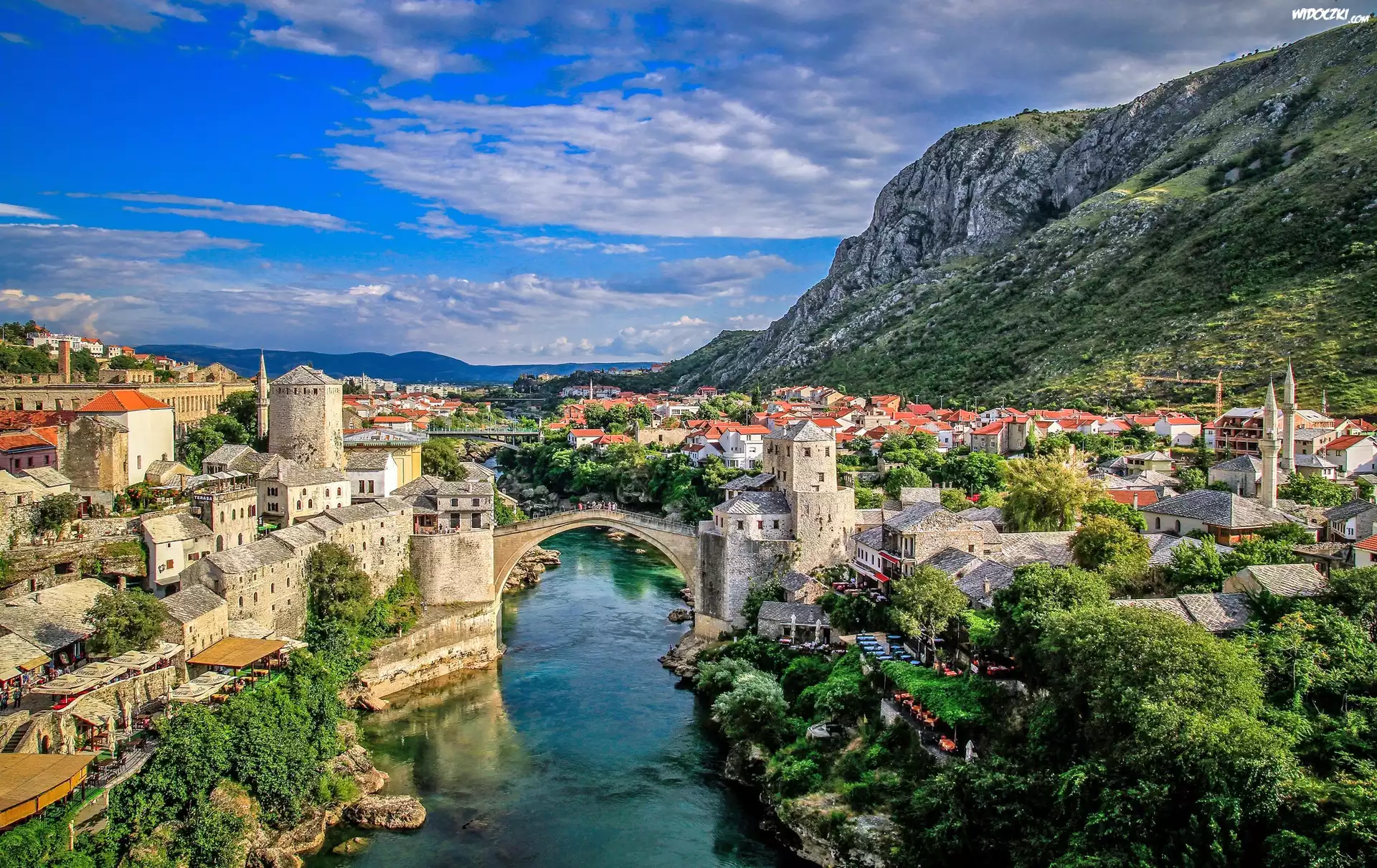 Bośnia i Hercegowina, Mostar, Rzeka Neretwa, Most, Góry