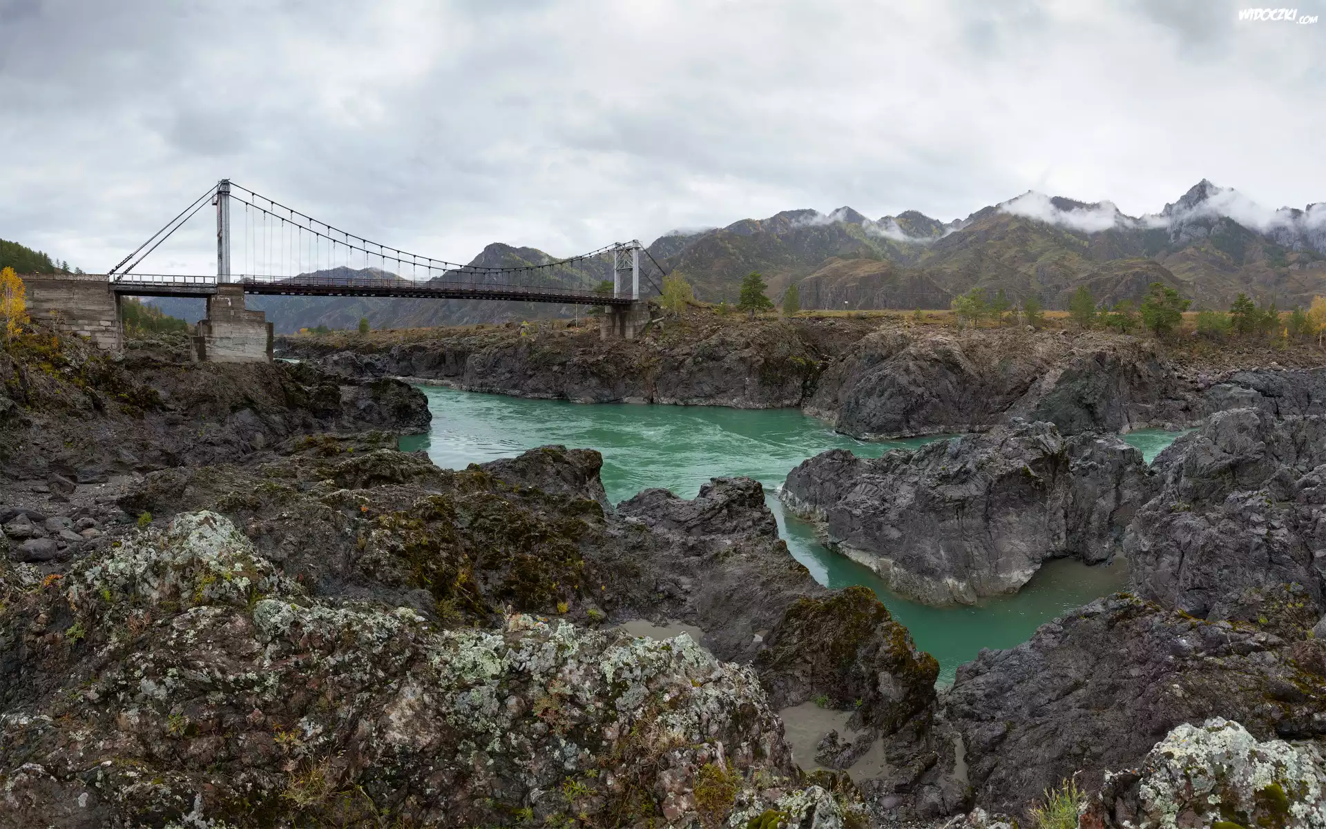 Zdjęcia, Most, Rzeka, Góry, Skały, Drzewa