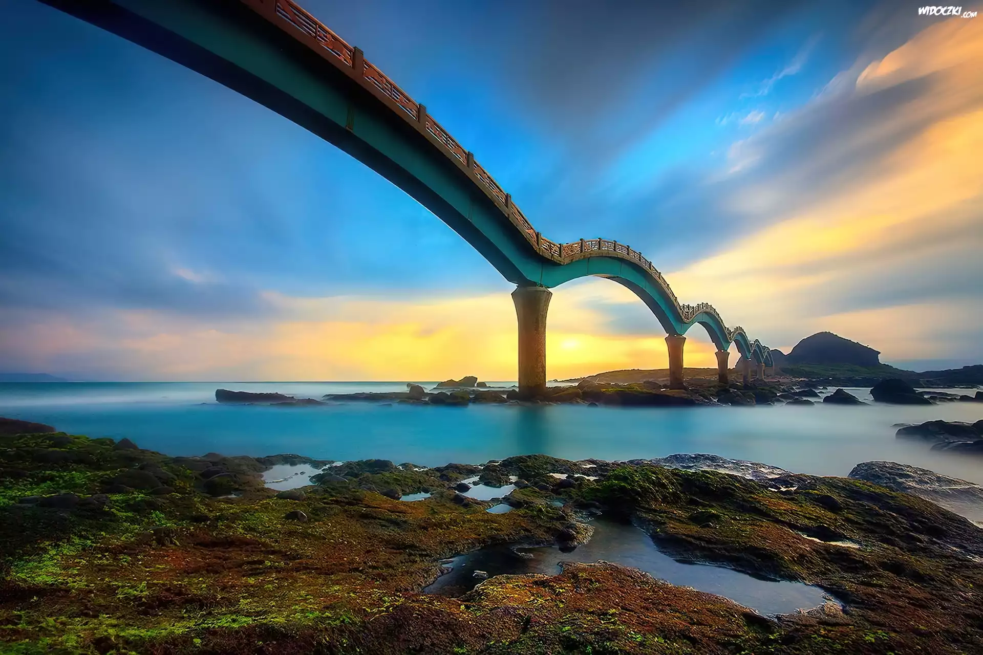 Most, Zachód, Słońca, Rzeka