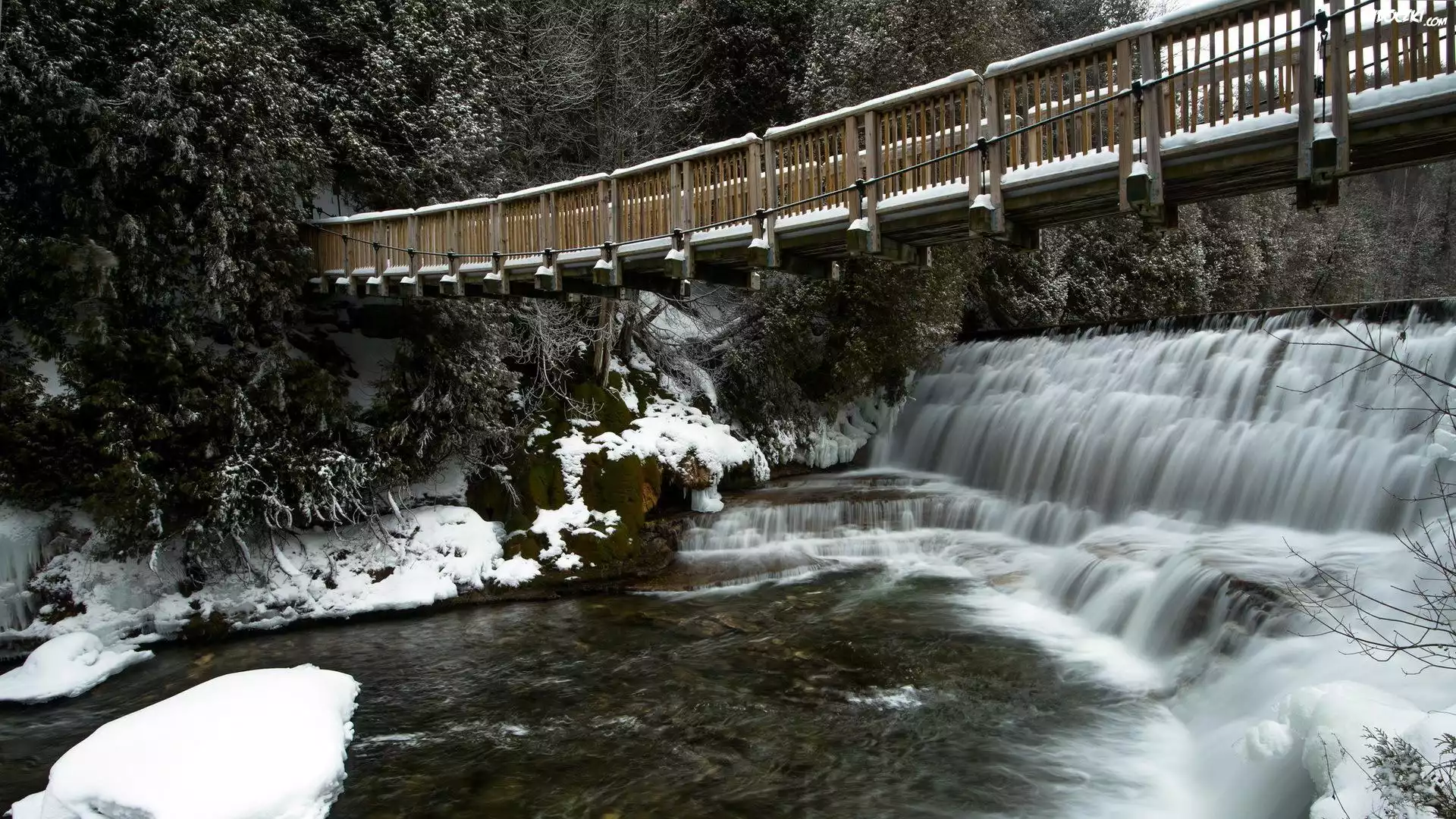 Most, Dla, Pieszych, Wodospad, Åšnieg