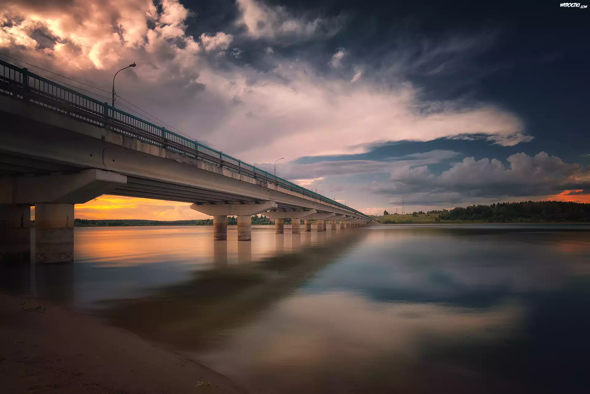 Most, Rzeka, Chmury, Zachód słońca