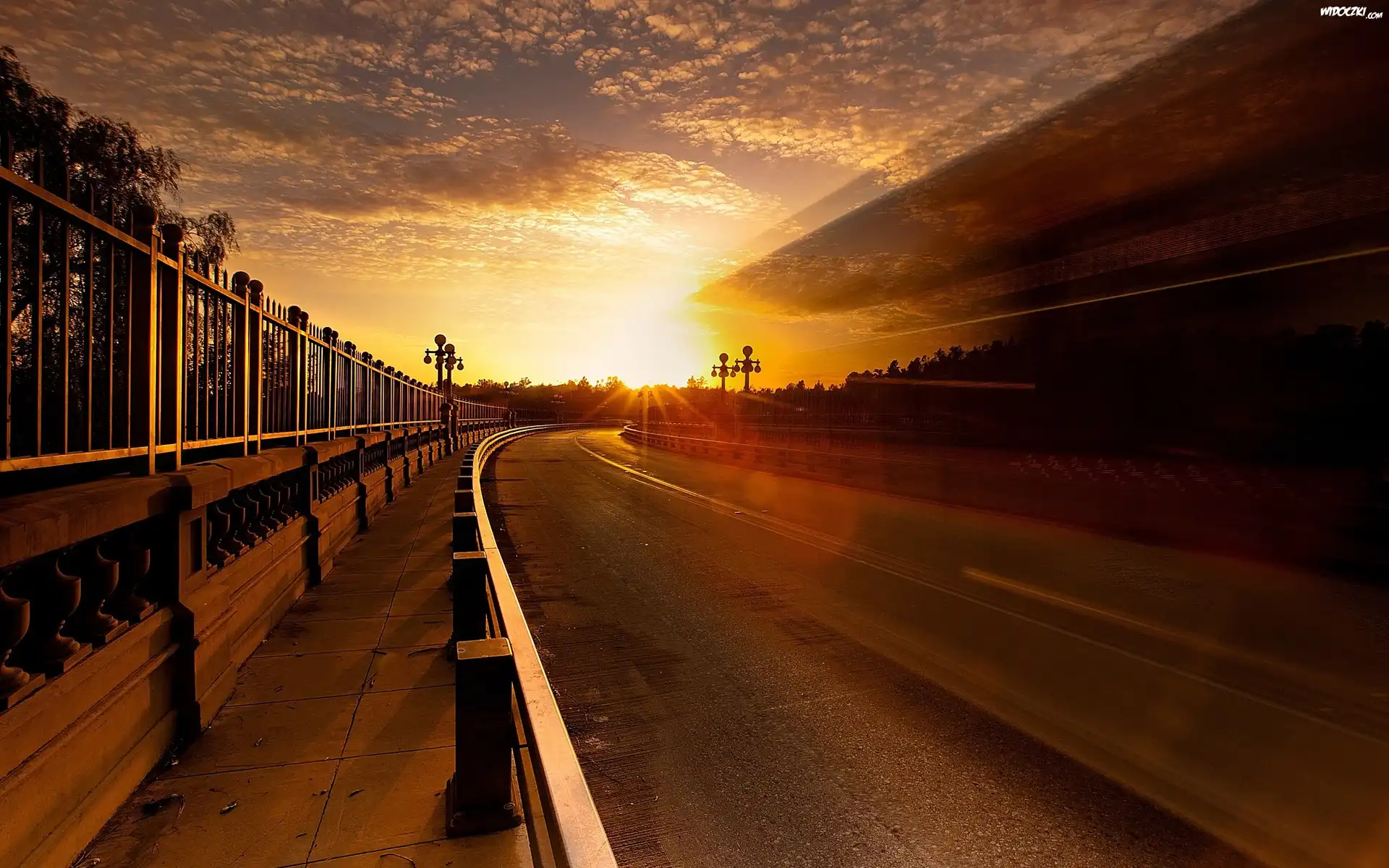 Zdjęcia, Most, Droga, Zachód, Słońca