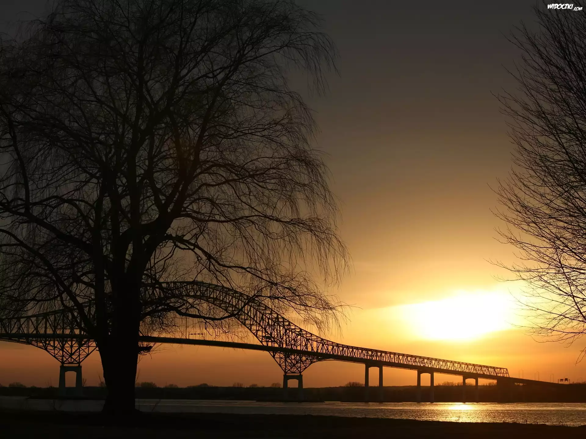 Zdjęcia, Most, Drzewa, Zachód, Słońca