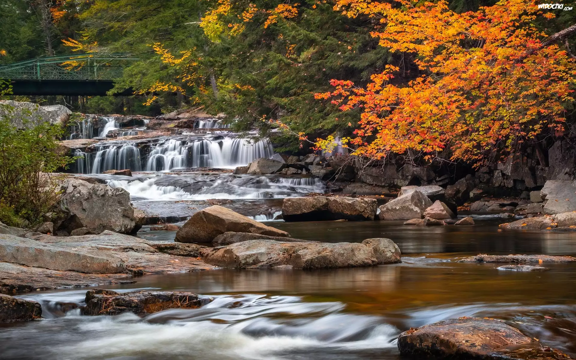 Zdjęcia, Rzeka, Skały, Kamienie, Mostek, Drzewa, Jesień