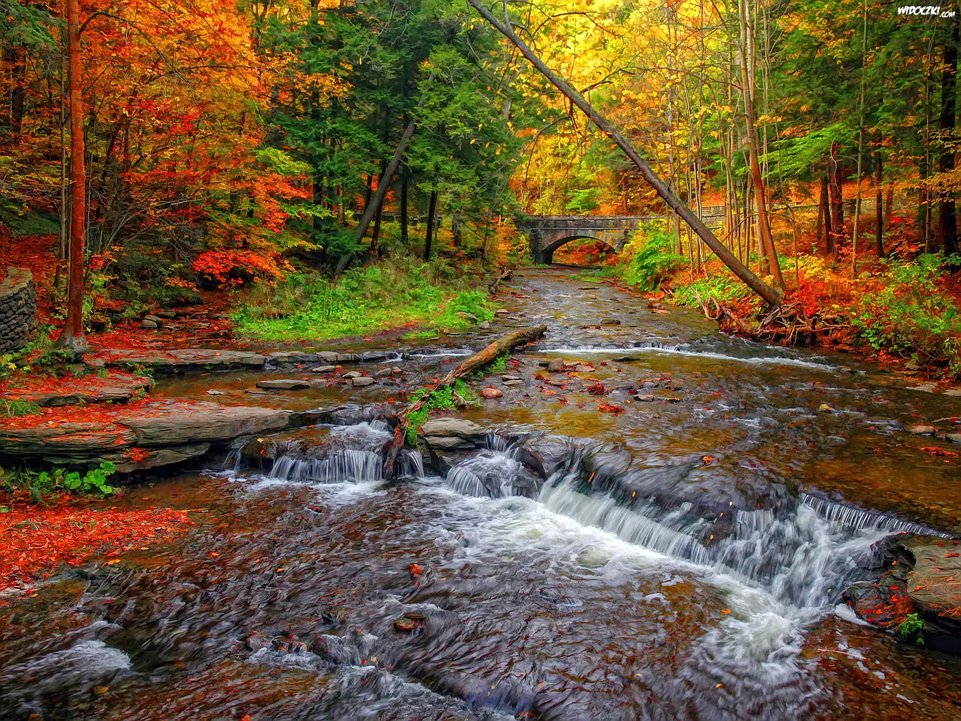 Zdjęcia, Jesień, Mostek, Rzeka
