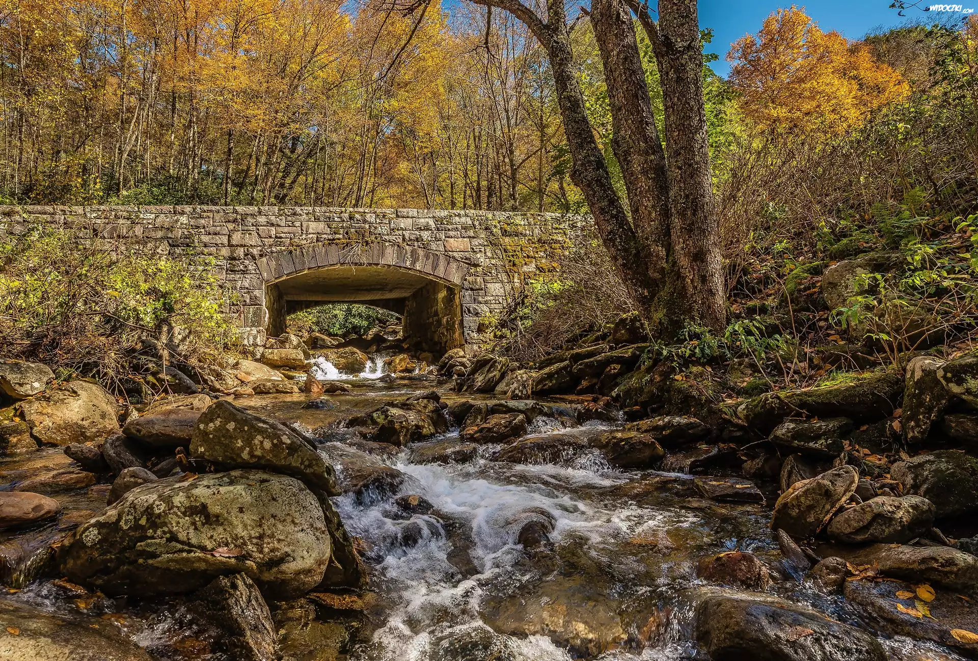 Zdjęcia, Mostek, Las, Potok, Kamienie