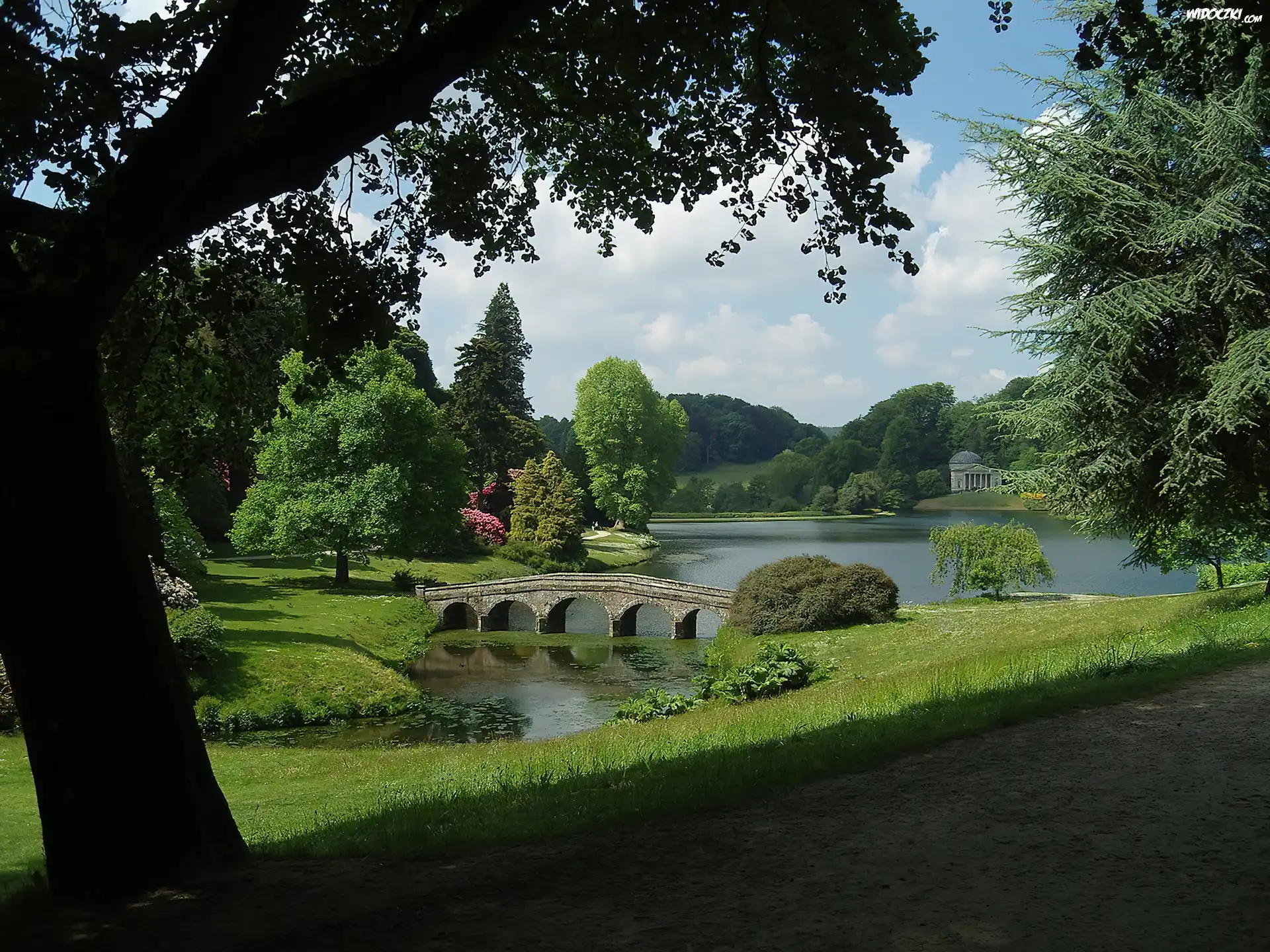 Zdjęcia, Mostek, Jeziorko, Ogród, Stourhead, Anglia