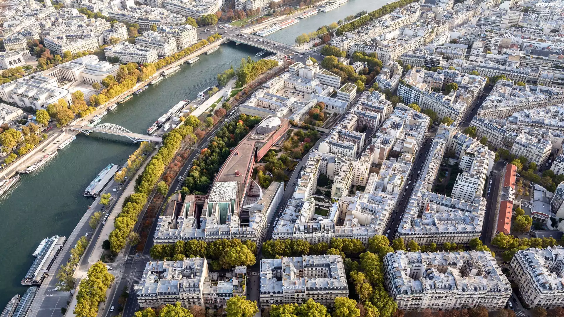 Francja, Domy, Rzeka Sekwana, Miasto, Paryż, Mosty, Z lotu ptaka