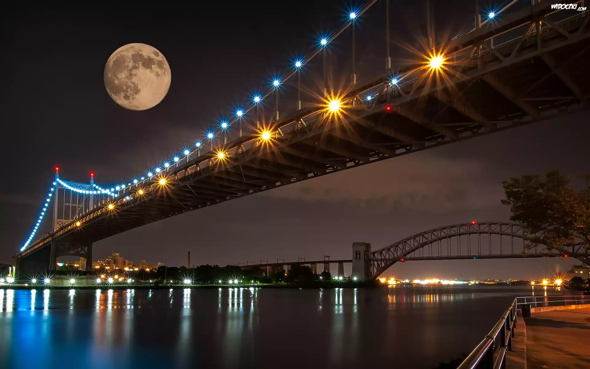 Zdjęcia, Mosty, Rzeka, Pełnia, Księżyc
