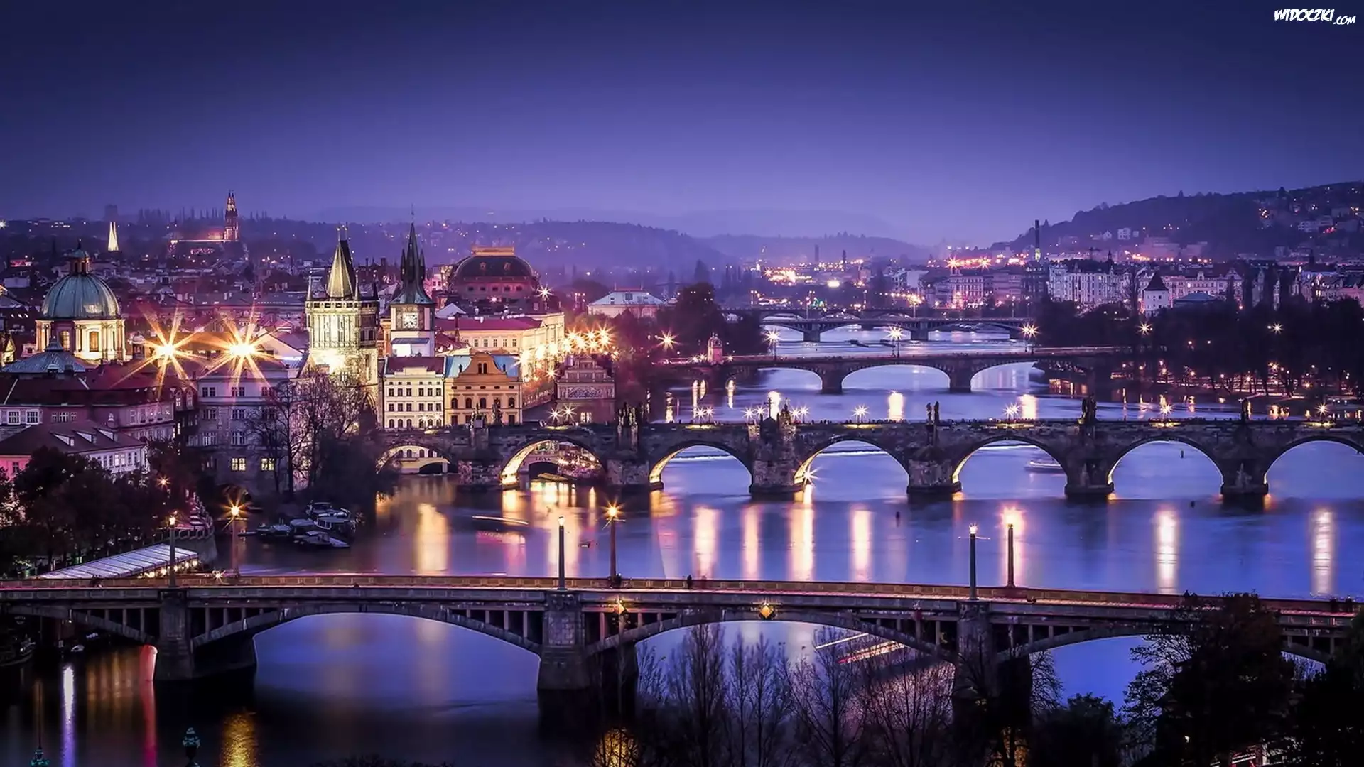 Rzeka, Mosty, Zdjęcie, Miasta, Latarnie, Czechy, Praga