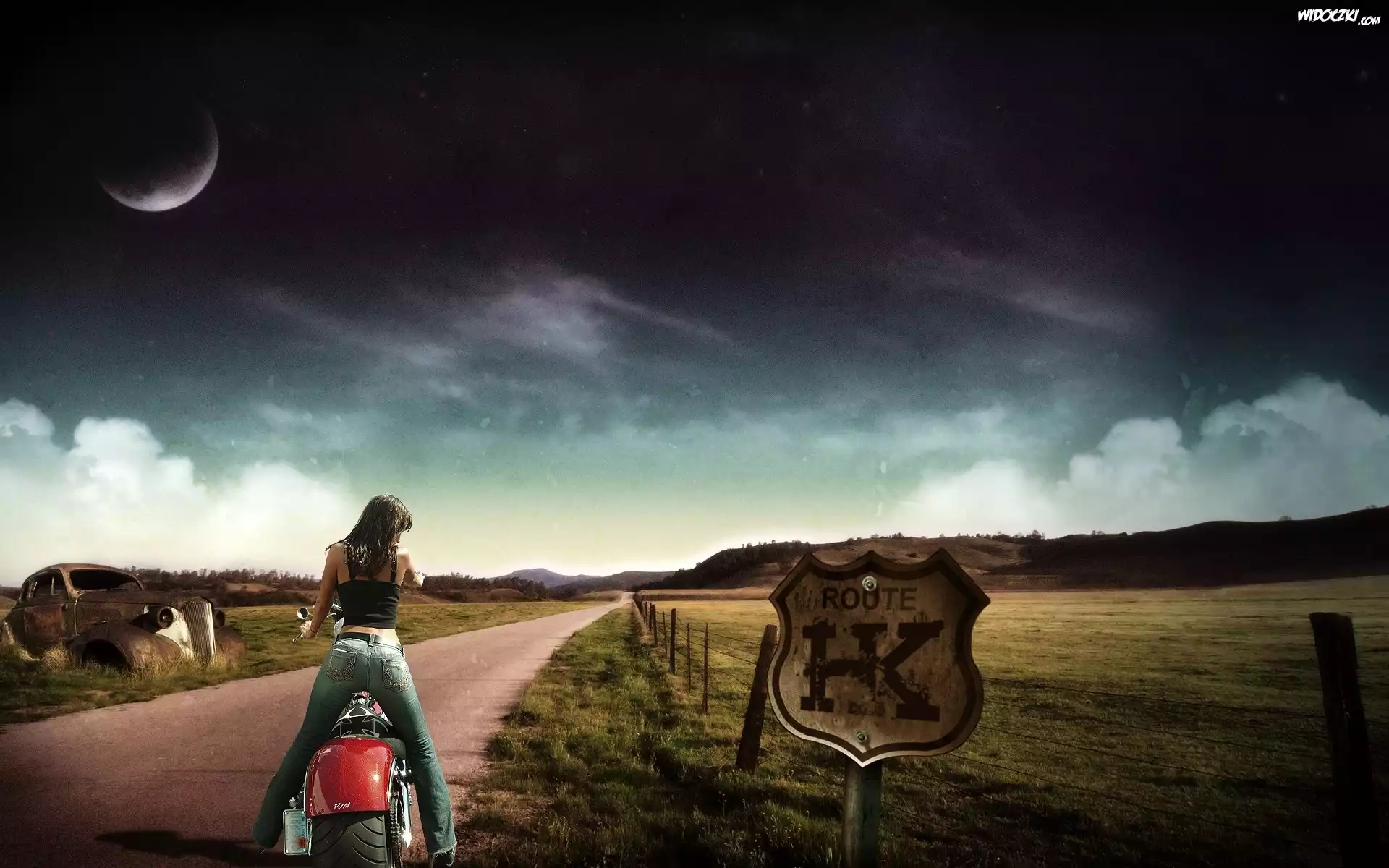 Dziewczyna, Motocykl, Droga