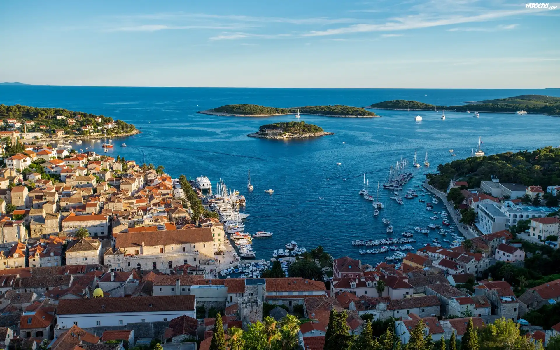 Zdjęcia, Chorwacja, Wyspa Hvar, Miasto Hvar, Morze, Domy, Żaglówki, Motorówki