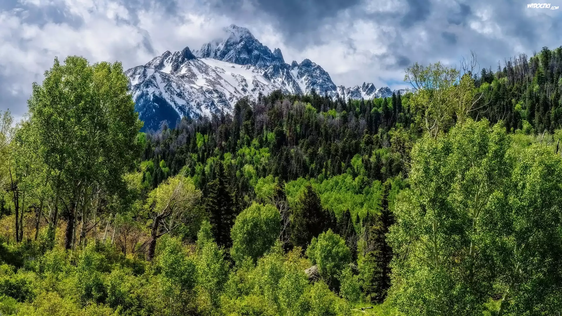 Zdjęcia, Stany Zjednoczone, Kolorado, Góry, San Juan Mountains, Mount Sneffels, Las, Drzewa