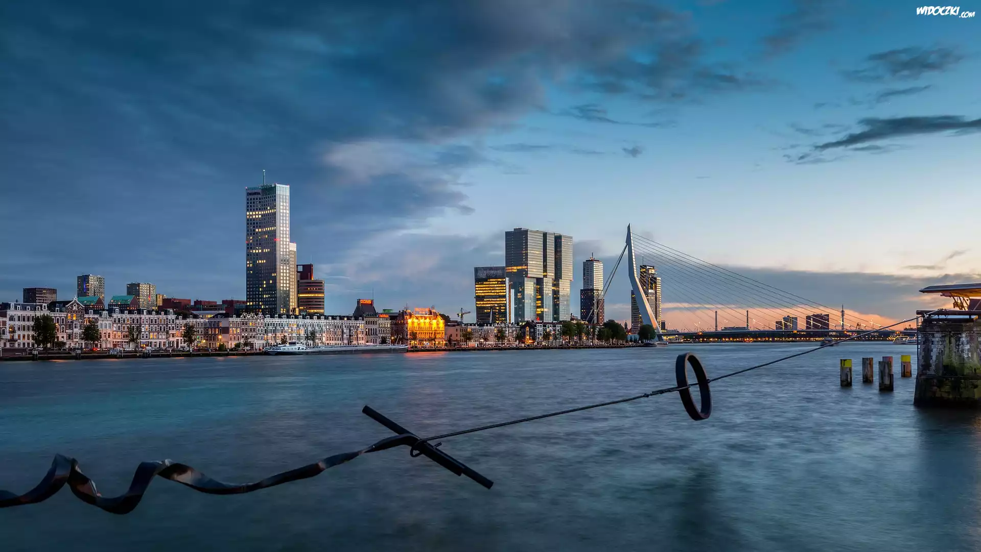 Zdjęcia, Rotterdam, Holandia, Wieżowiec Maastoren, Most Erasmusbrug, Rzeka Nowa Moza