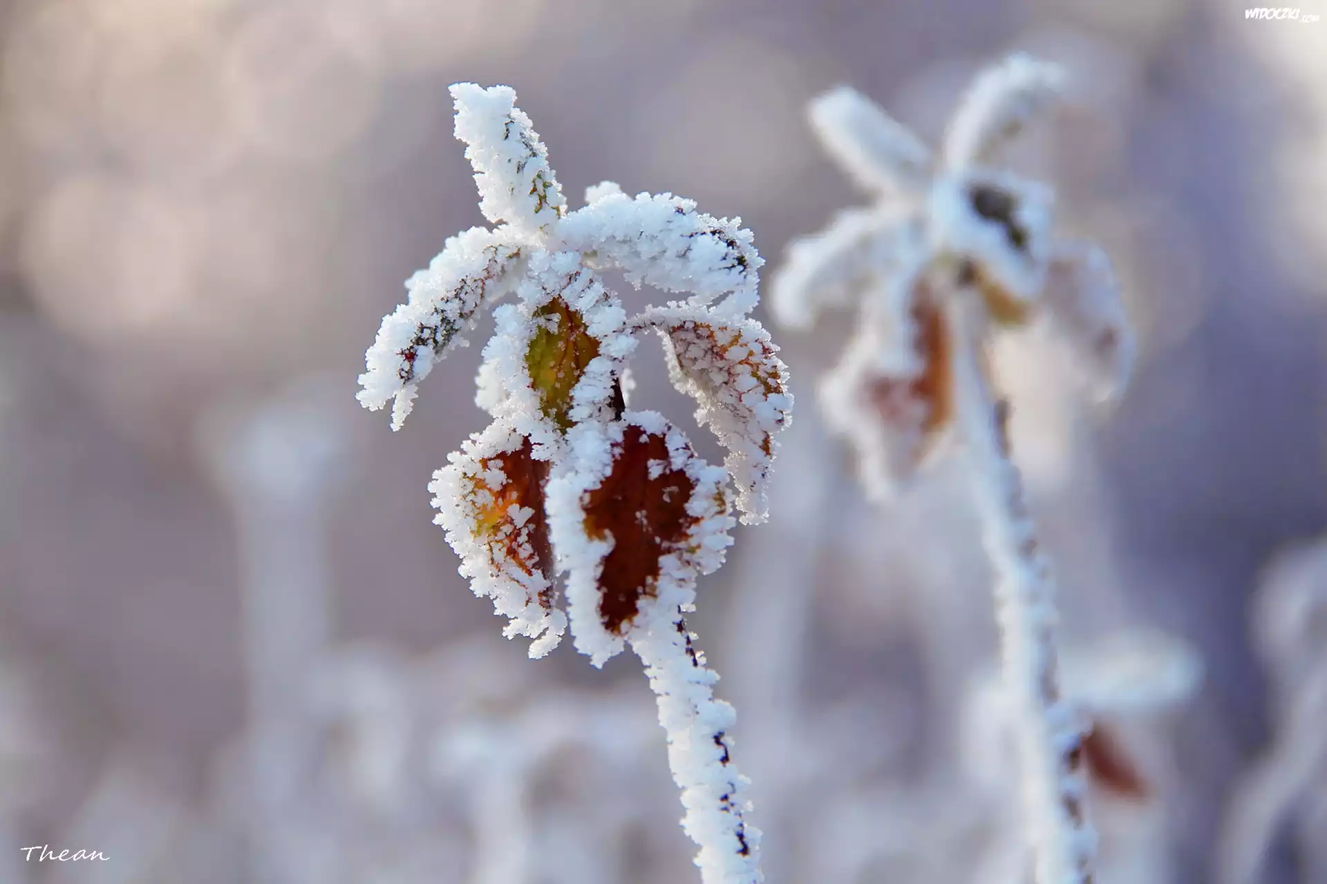 Zdjęcia, Mróz, Liście, Gałązki, Szadź