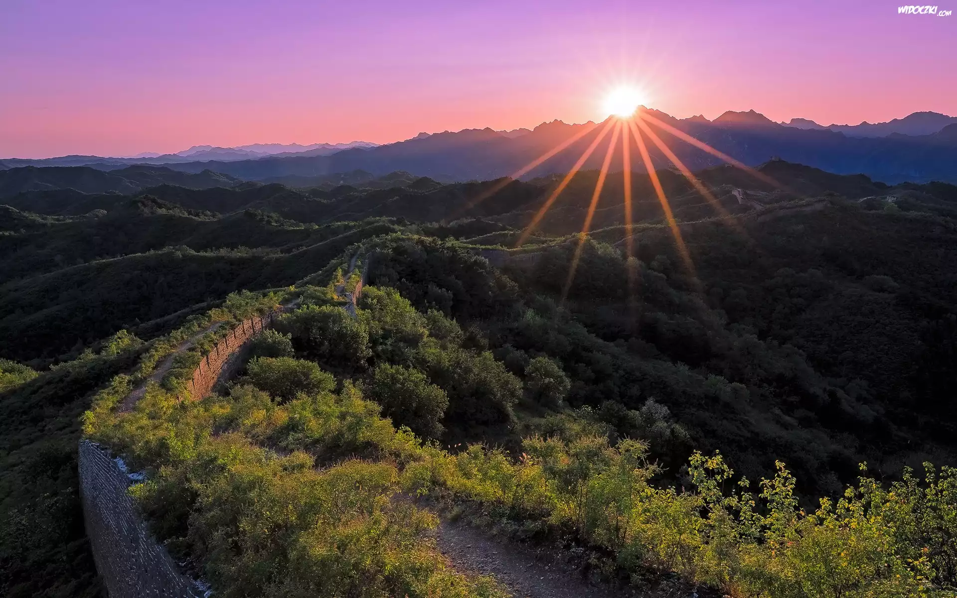 Zdjęcia, Wielki Mur Chiński, Prowincja Hebei, Chiny, Promienie słońca