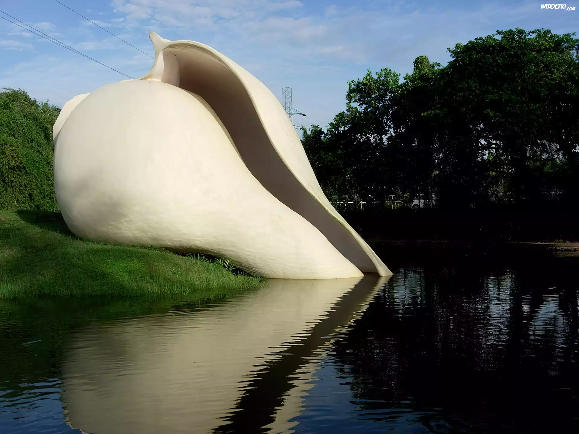 Zdjęcia, Muszla, Posąg, Jezioro, Drzewa, Kerala, Indie
