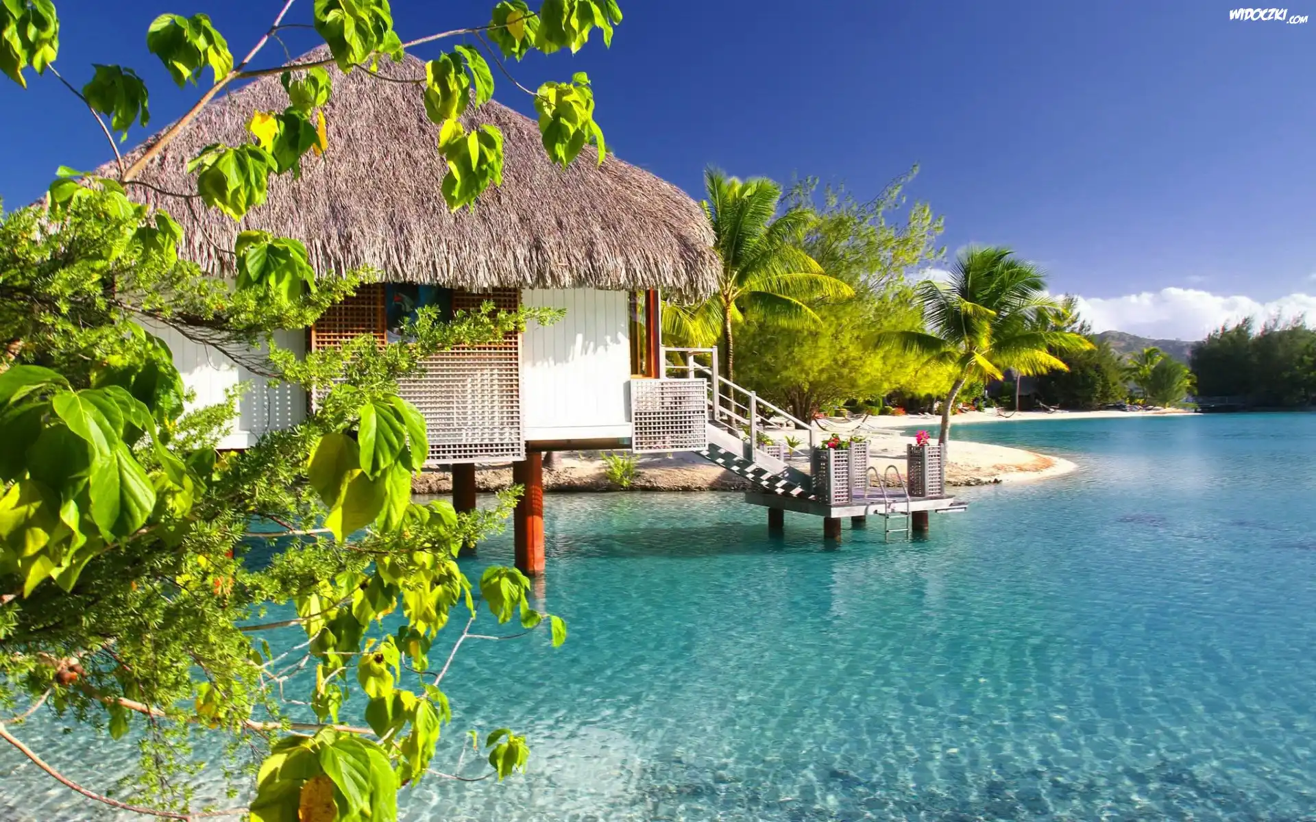 Zdjęcia, Dom, Na, Palach, Palmy, Góry, Morze, Tropiki