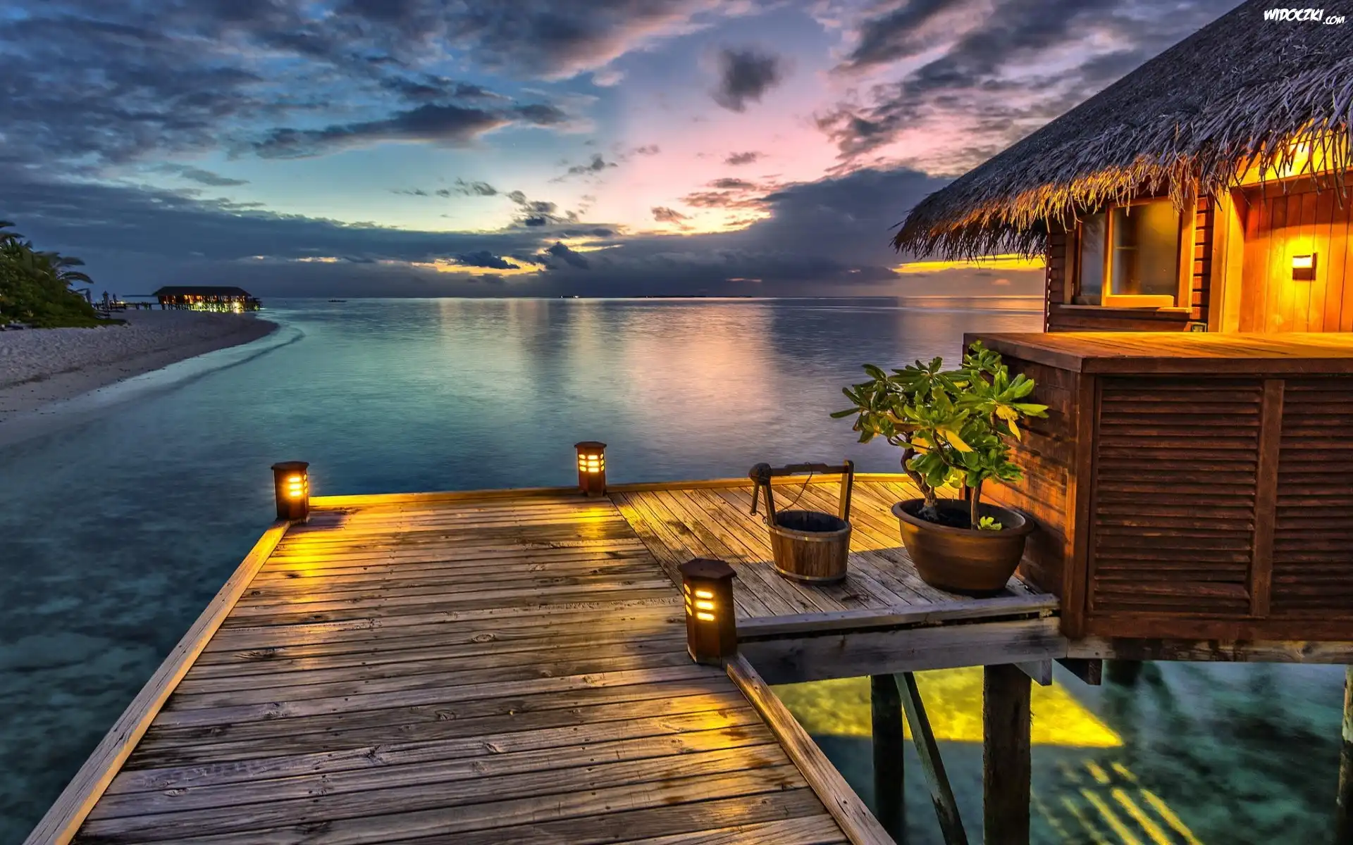 Dom, Na, Palach, Lampiony, Plaża, Morze, Tropiki
