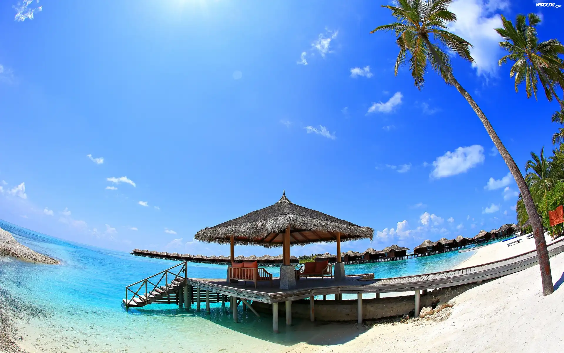 Zdjęcia, Domy, Na, Palach, Plaża, Palmy, Morze, Tropiki
