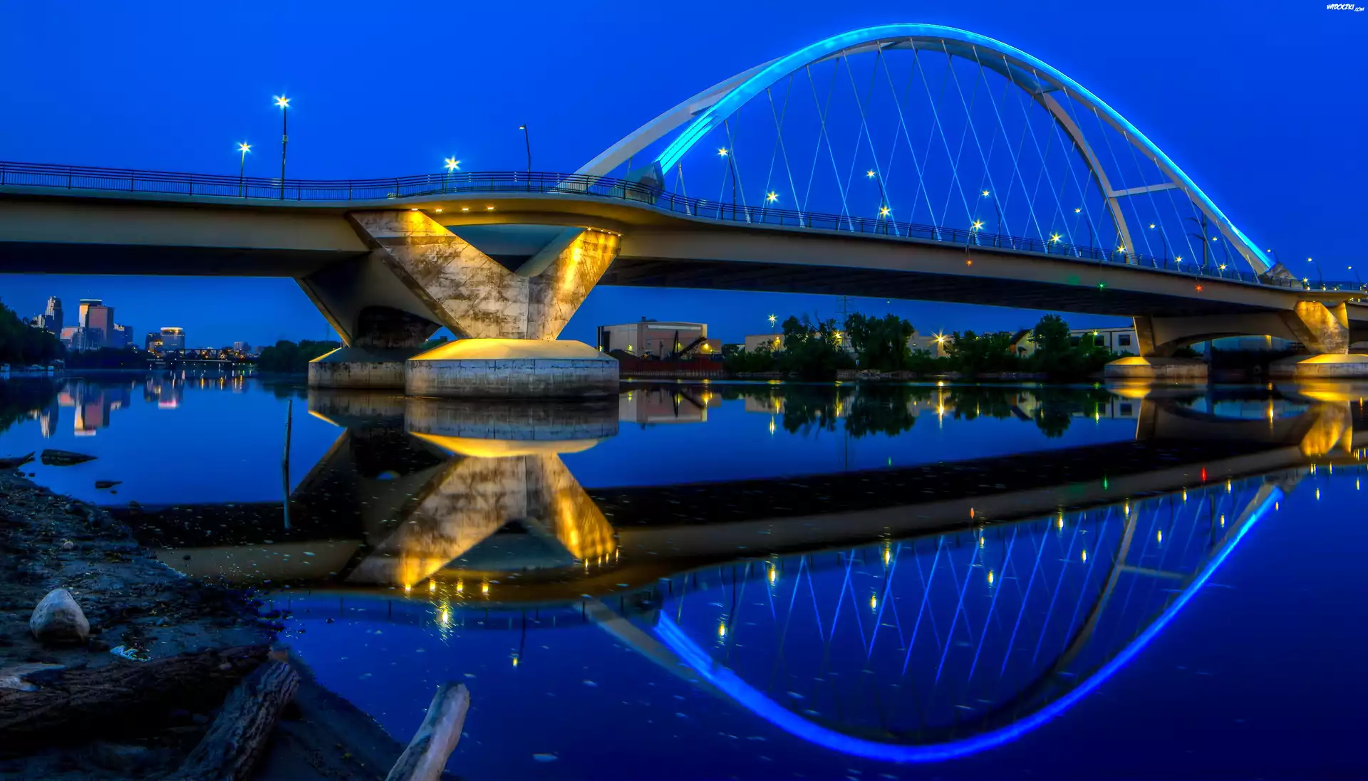 Most, Na, Rzece, Missisipi, Oświetlenie, Noc, USA