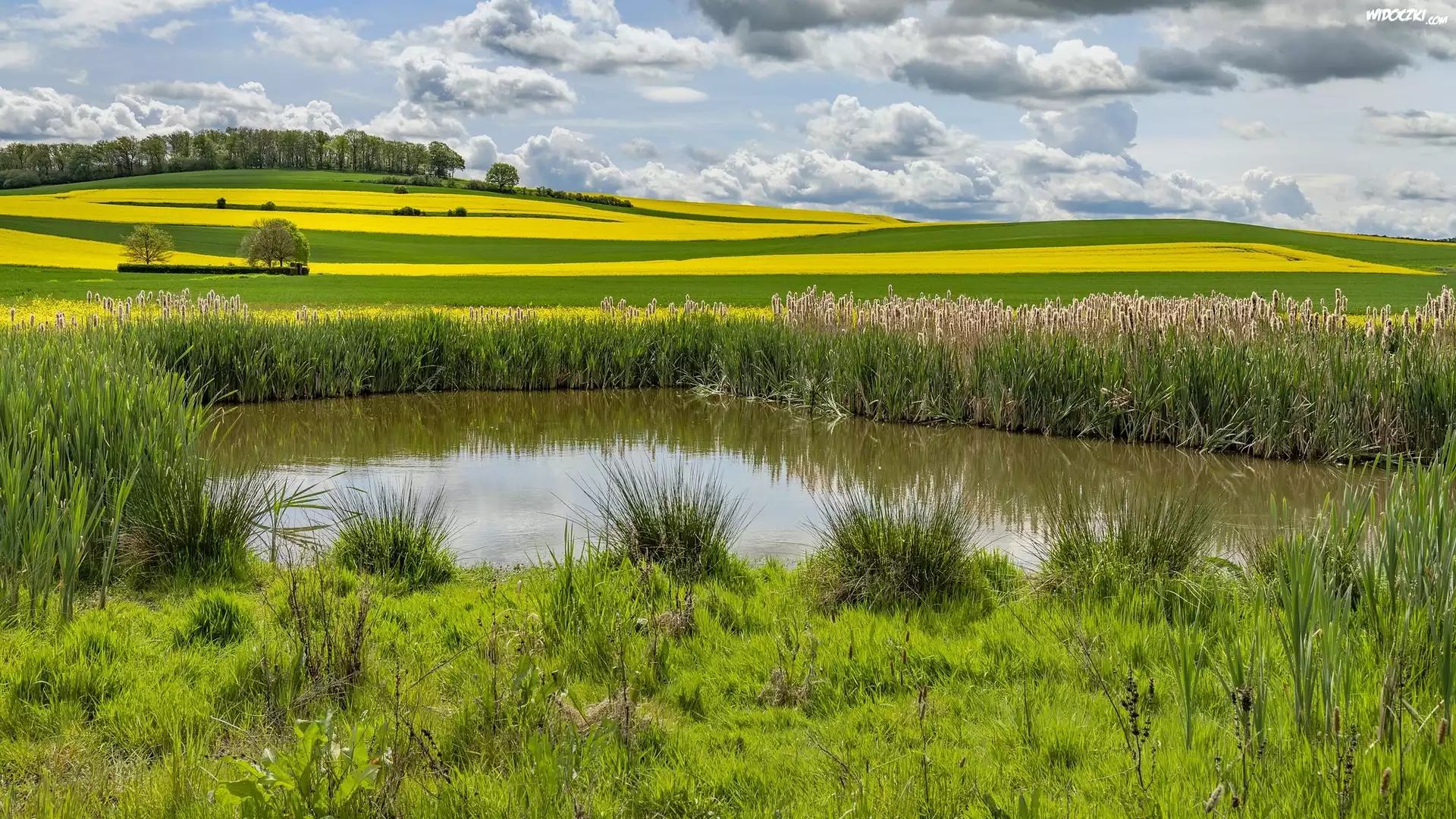 Zdjęcia, Staw, Szuwary, Pola, Nadrenia-Palatynat, Niemcy