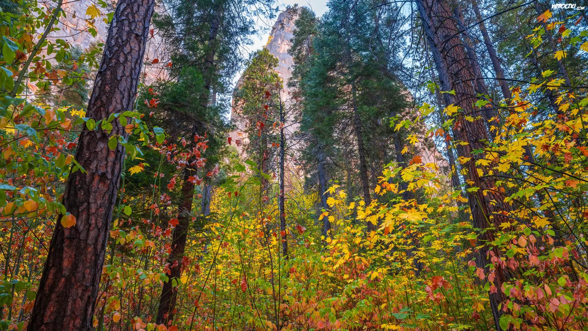Jesień, Park Narodowy Yosemite, Góry, Drzewa, Las, Stan Kalifornia, Stany Zjednoczone