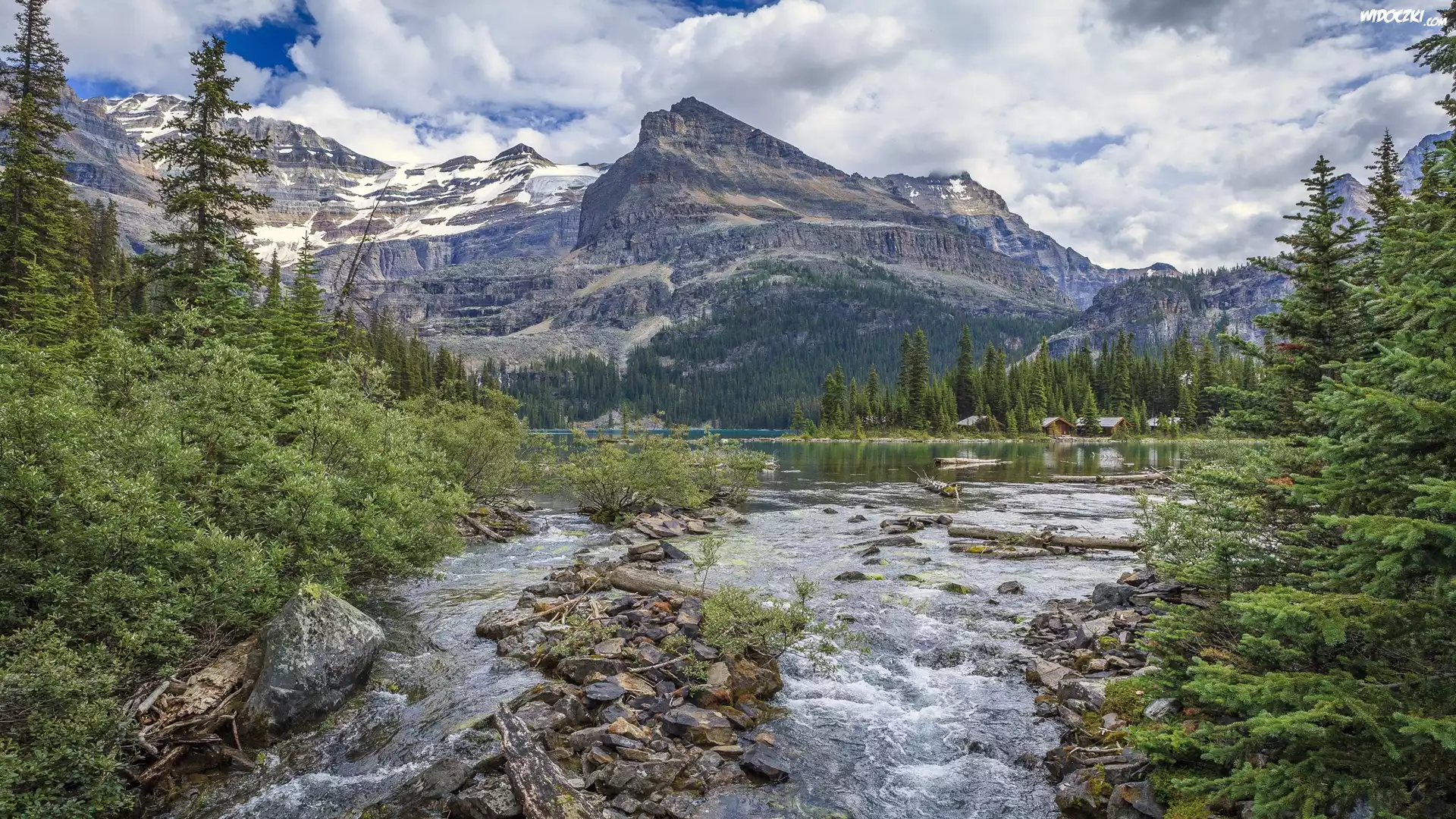 Zdjęcia, Kanada, Kolumbia Brytyjska, Park Narodowy Yoho, Góry Canadian Rockies, Jezioro O’Hara, Drzewa