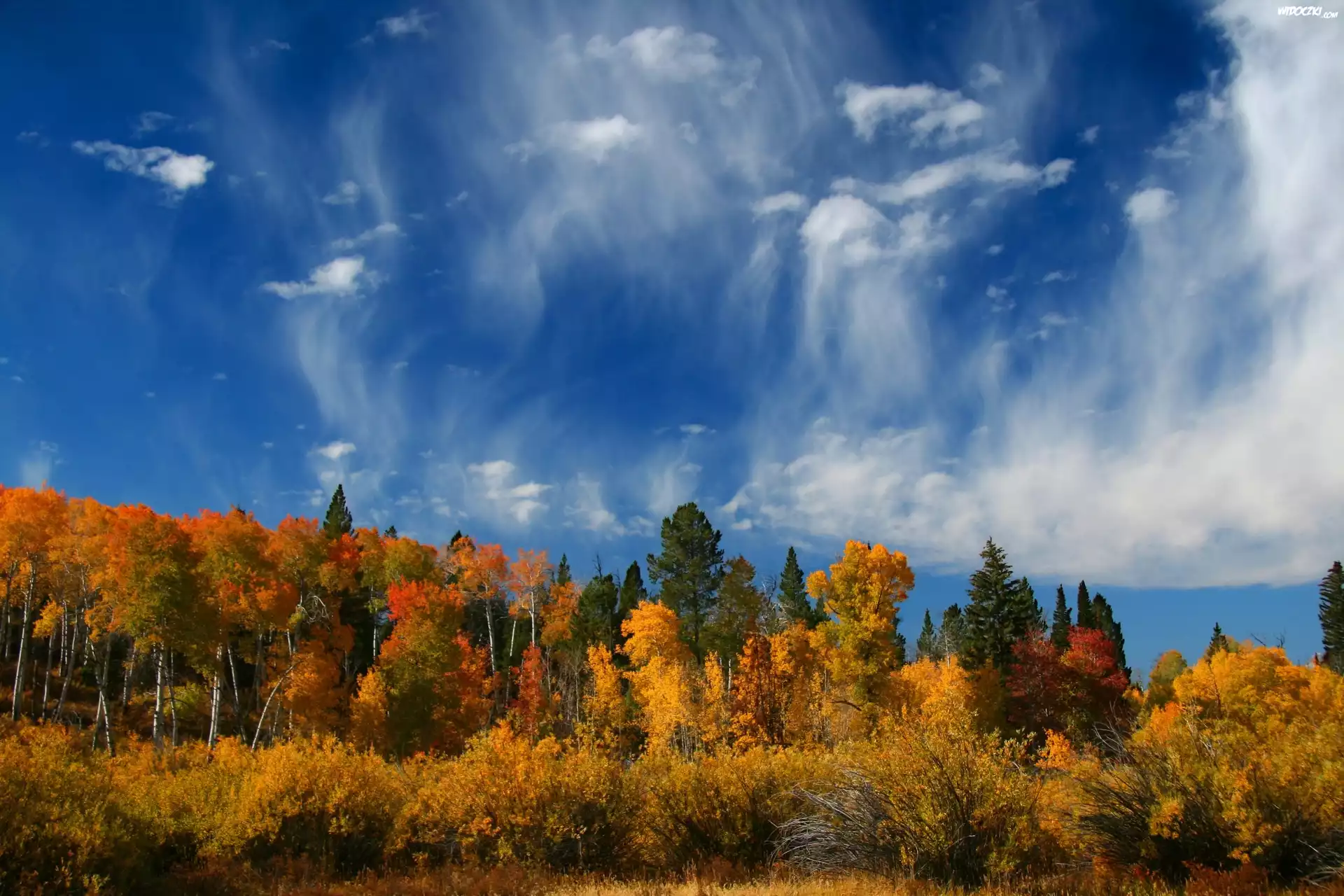 Park, Narodowy, Wyoming, Stany, Zjednoczone, Jesień, Las, Niebo