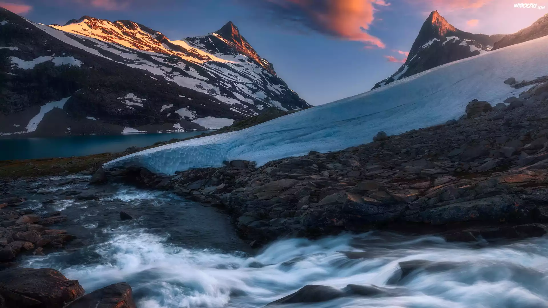 Zdjęcia, Park Narodowy Jotunheimen, Góry Jotunheimen, Rzeka, Zima, Norwegia