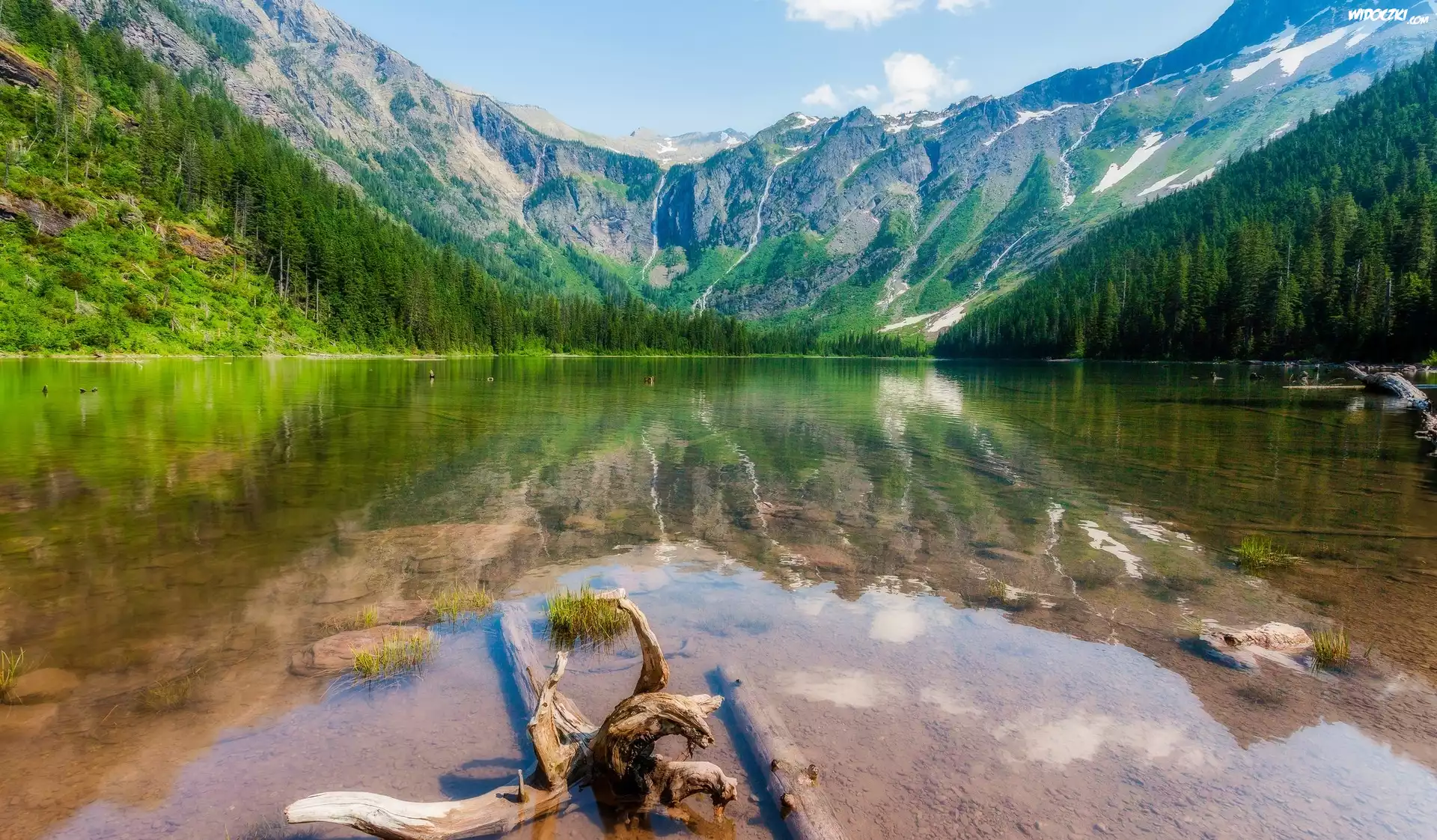 Zdjęcia, Stany Zjednoczone, Stan Montana, Park Narodowy Glacier, Jezioro Hidden Lake, Góry, Drzewa
