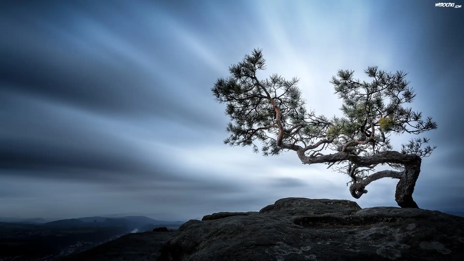 Zdjęcia, Niemcy, Park Narodowy Saskiej Szwajcarii, Niebo, Szczyt, Góra Lilienstein, Drzewo, Sosna