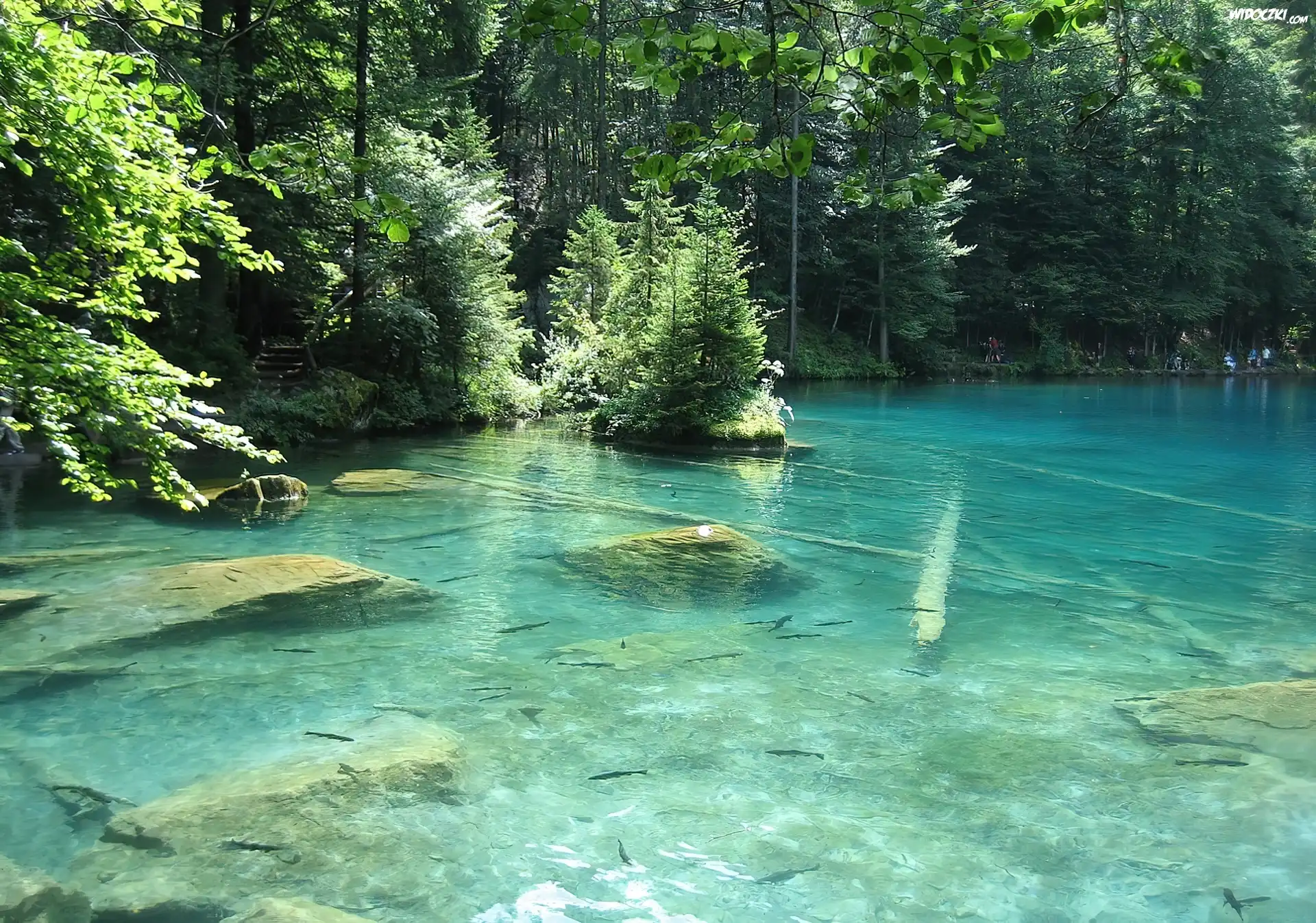 Zdjęcia, Niebieskie, Jezioro, Zalesiony, Brzeg, Szwajcaria