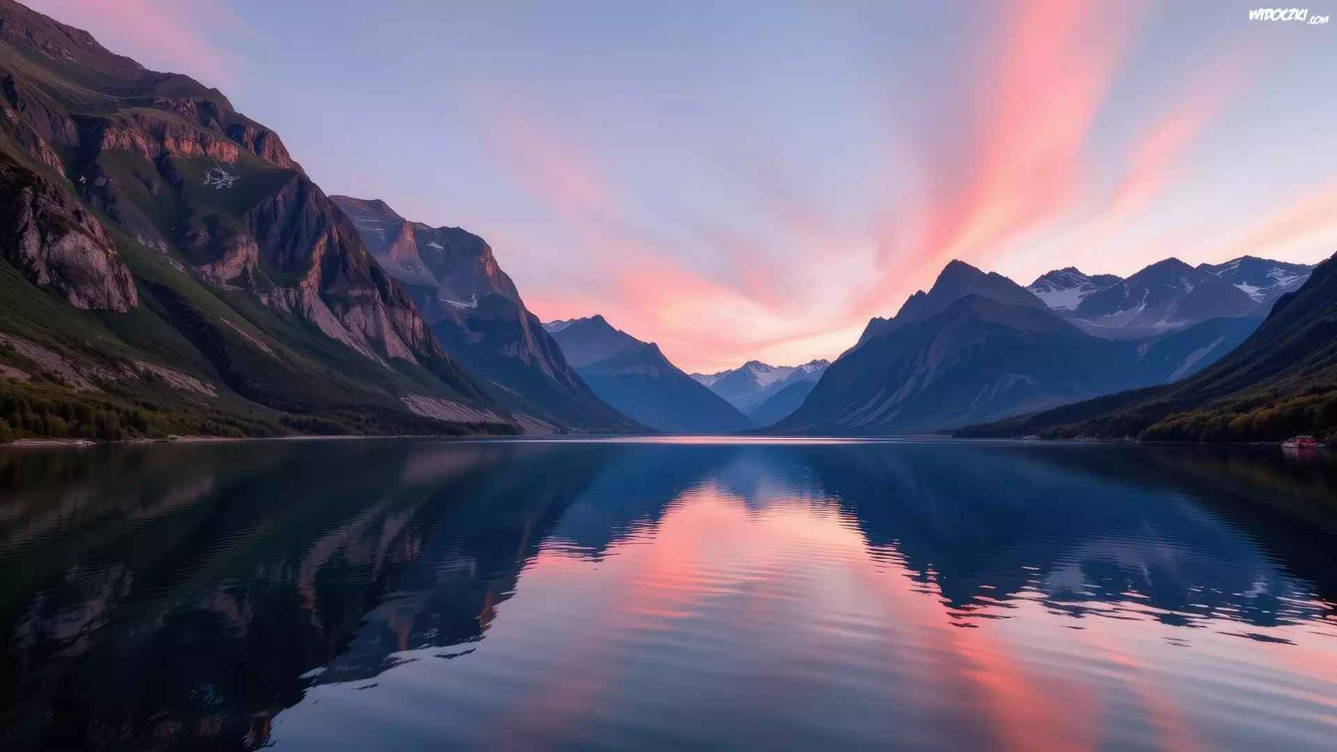 Zdjęcia, Jezioro, Góry, Kolorowe, Niebo, Odbicie, AI