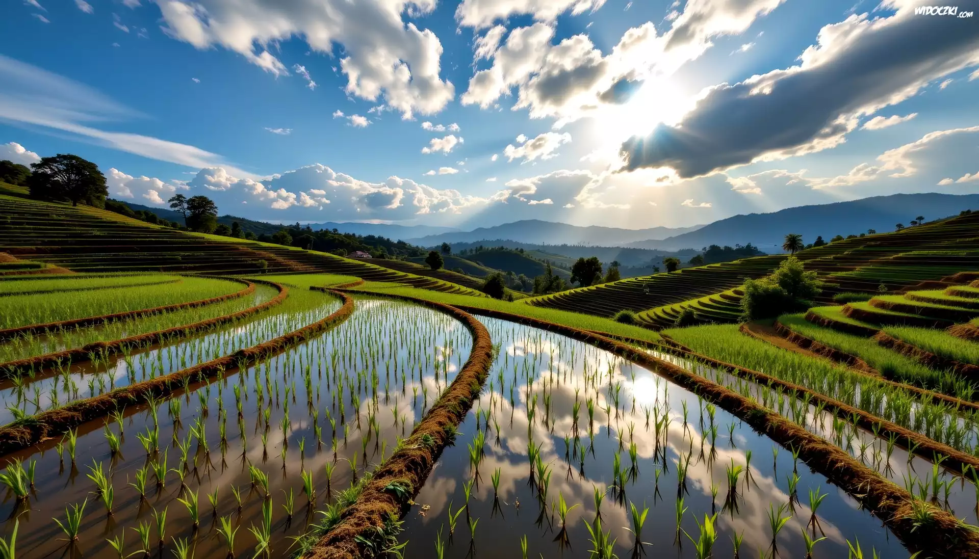 Tarasy ryżowe, Pola, Niebo, Grafika AI